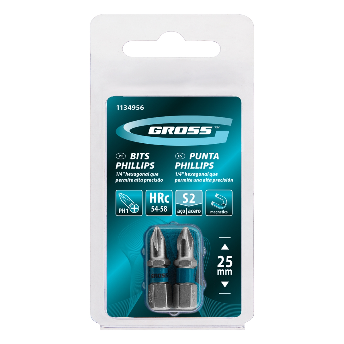 Bit Phillips PH1 25mm 1/4'' 2 Pçs Aço S2 Gross Ideal Parafusadeira