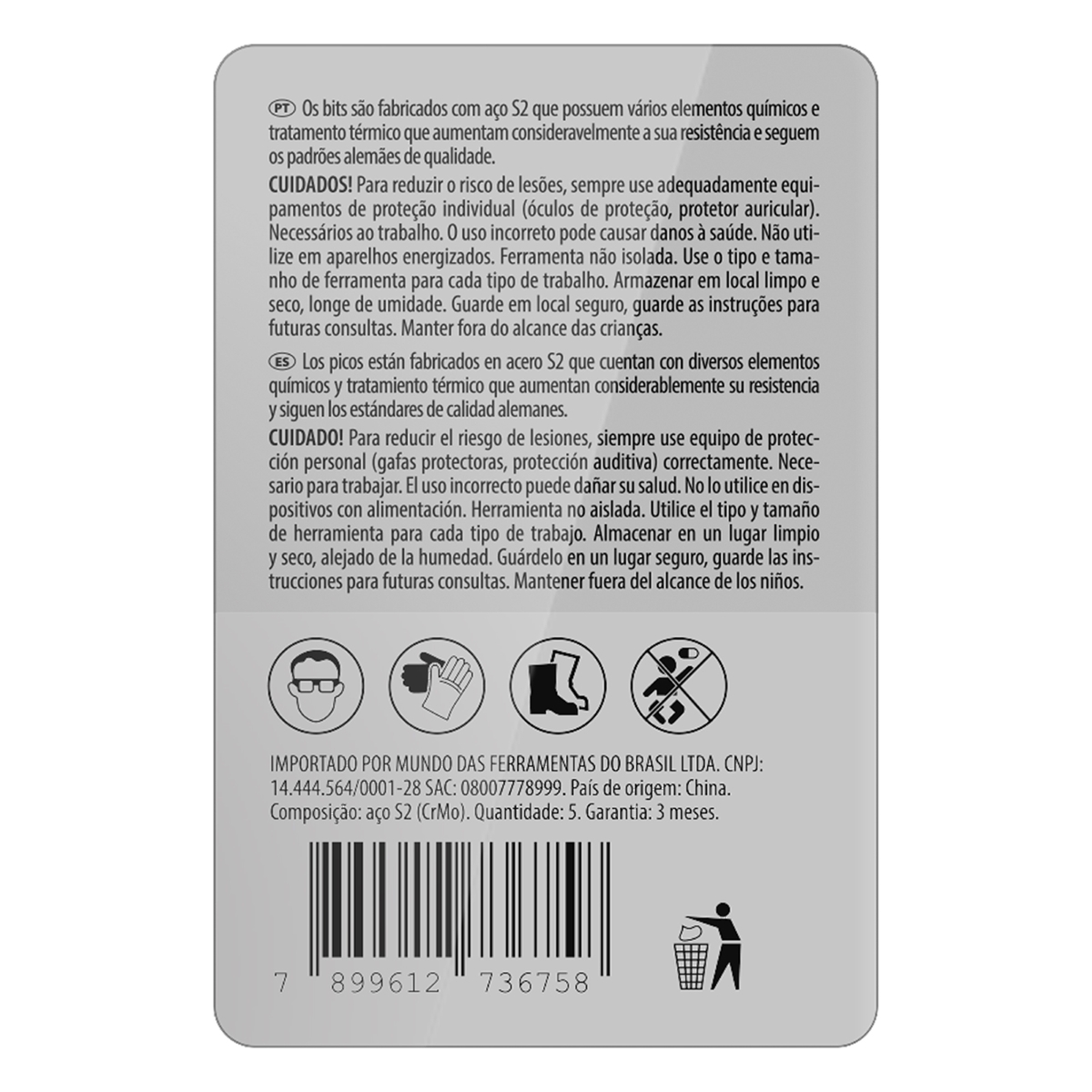 Bits Pozidriv PZ1 Aço Rápido 5 Peças – Precisão e Durabilidade para Todas as Suas Tarefas Os Bits Pozidriv PZ1 da Gross são a escolha ideal para profissionais e entusiastas que buscam ferramentas de alta qualidade e desempenho confiável. Fabricados em Taiwan com aço japonês de liga S2, esses bits oferecem resistência excepcional e durabilidade prolongada, garantindo que você possa realizar uma ampla gama de tarefas com precisão e eficiência. Seja para montagem de móveis, reparos domésticos ou trabalhos mais complexos, esses bits são projetados para suportar as demandas do dia a dia. A têmpera do aço atinge uma dureza de 58 HRC, assegurando a resistência contra desgastes e deformações, mesmo sob uso intenso. O acabamento cromado não apenas confere um visual atraente, mas também protege contra a corrosão, prolongando a vida útil dos bits. A ranhura magnética integrada facilita o manuseio, permitindo que você guie a chave de fenda com uma mão enquanto segura a peça de trabalho, aumentando a segurança e a precisão. A embalagem blister duplo garante a proteção durante o transporte e armazenamento, além de permitir uma inspeção visual detalhada antes da compra. Invista em qualidade e desempenho com os Bits Pozidriv PZ1 da Gross e eleve o nível do seu trabalho. Especificações País de fabricação: Taiwan Material: Aço japonês de liga S2 Dureza: 58 HRC Acabamento: Cromado Tipo de ponta: Pozidriv PZ1 Comprimento: 25 mm Ranhura: Magnética Itens Inclusos 5 Bits Pozidriv PZ1 Perguntas Frequentes (FAQ) Pergunta: Qual a durabilidade desses bits? Resposta: Fabricados em aço japonês de liga S2 com têmpera de 58 HRC, esses bits são altamente resistentes ao desgaste e deformação, garantindo uma longa vida útil. Pergunta: Posso usar esses bits com chave de fenda elétrica?Resposta: Sim, os Bits Pozidriv PZ1 são compatíveis com chaves de fenda elétricas e suportes de chave de fenda. Pergunta: Os bits são resistentes à ferrugem?Resposta: Sim, o acabamento cromado oferece proteção contra a corrosão, prolongando a vida útil dos bits. Pergunta: Qual a garantia do produto?Resposta: Garantia legal: 90 dias.