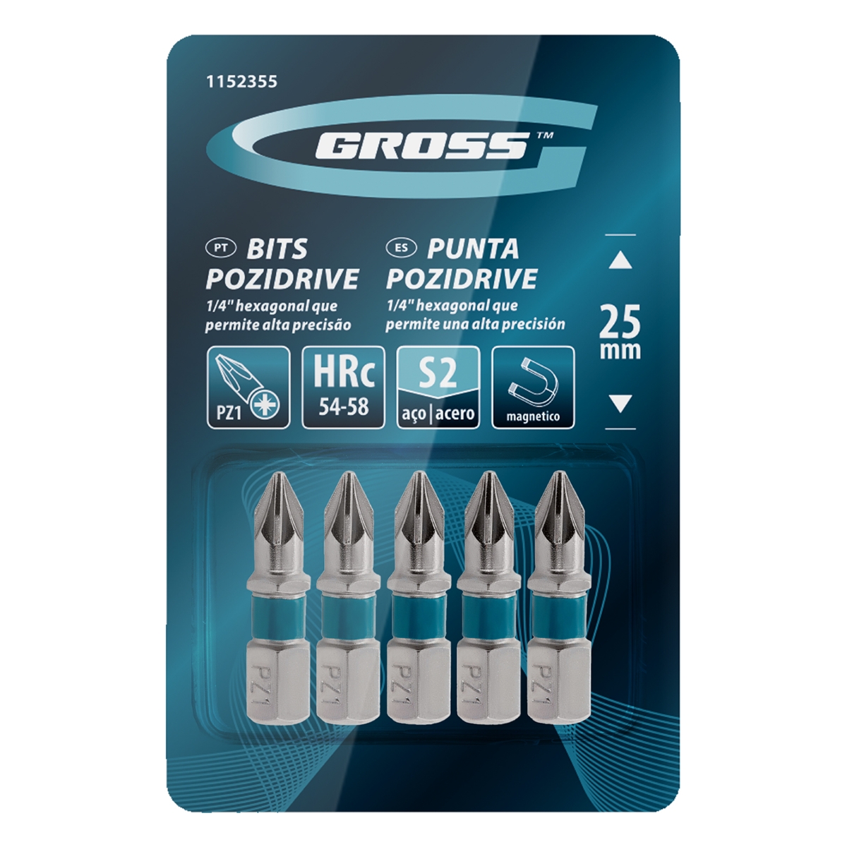 Bits PZ1 Pozidriv Aço Rápido 5pcs 25mm Gross 1152355 Alta Resistência