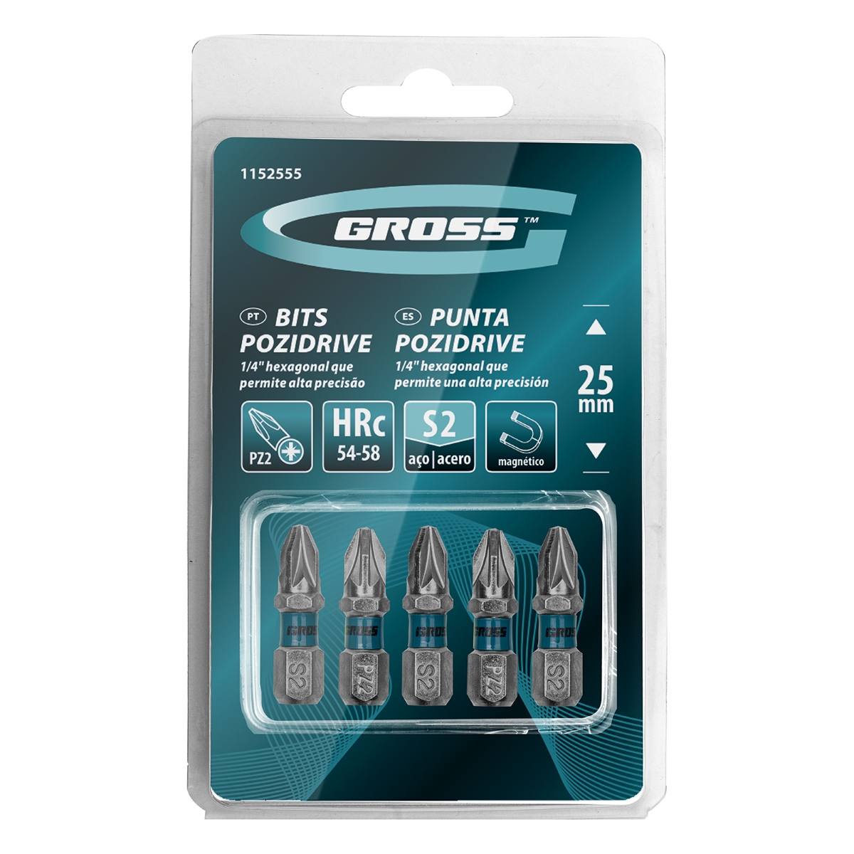 Bits PZ2 Pozidriv Aço Rápido 5pcs 25mm Gross Alta Resistência Cromado Magnético
