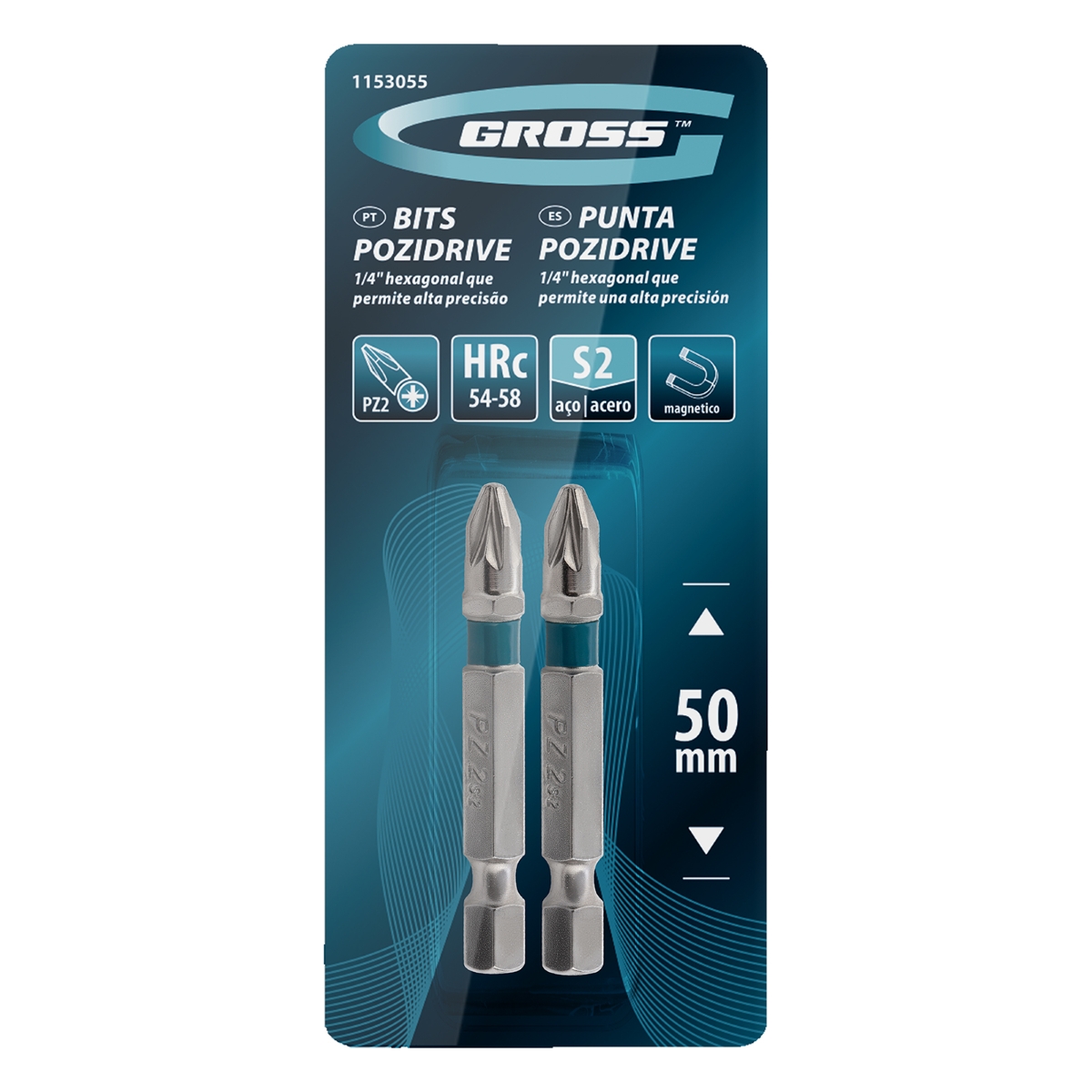 Bit Para Parafusadeira PZ2 50mm Aço 2 Peças Gross