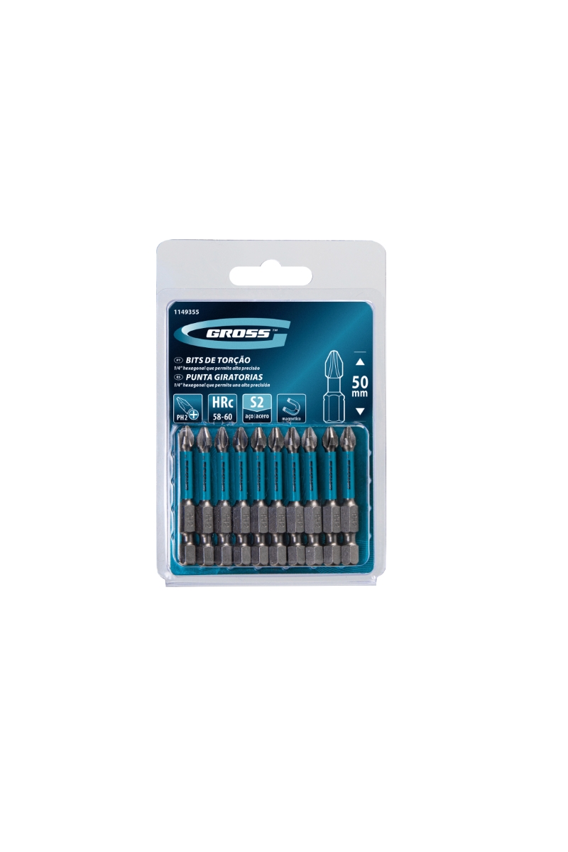 Bits Torção PH2 50mm 10PCS 1/4'' Gross 1149355 Aço Japonês S2