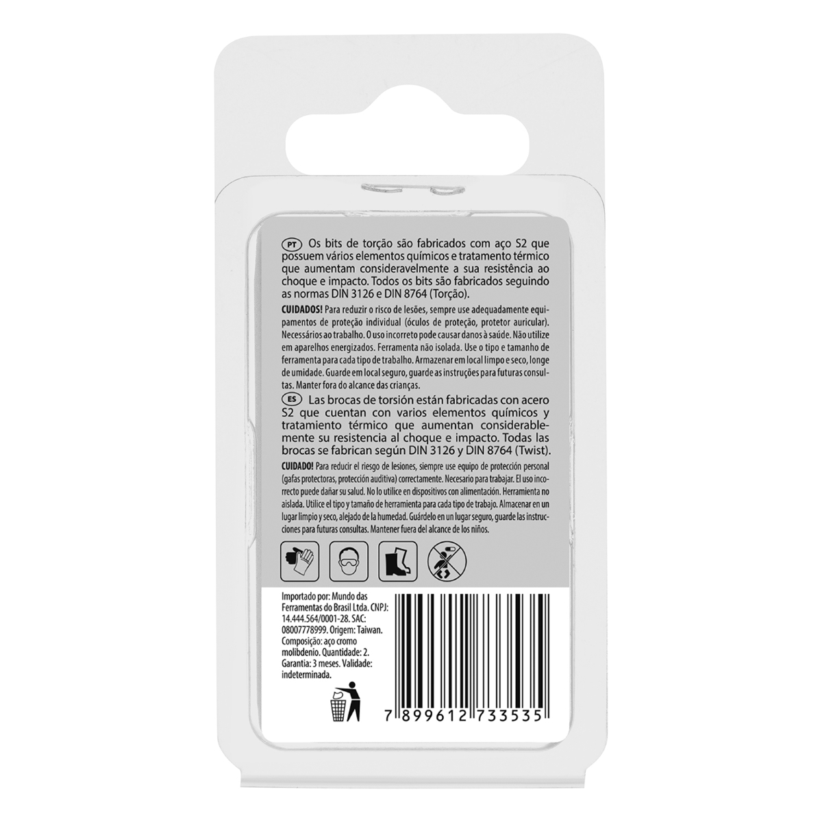 Bits de Torção PZ2 para Impacto 25mm - Conjunto com 2 Unidades Gross Maximize a eficiência e a durabilidade das suas ferramentas com o Conjunto de 2 Bits de Torção PZ2 x 25mm Gross. Projetados especificamente para chaves de fenda de impacto, estes bits são ideais para a montagem e desmontagem de conexões roscadas em uma variedade de aplicações, desde construção e mecânica até reparos domésticos e oficinas automotivas. A grande vantagem destes bits reside na sua zona de torção flexível, que absorve os impactos laterais, distribuindo a carga de forma uniforme e protegendo tanto o bit quanto a peça que está sendo trabalhada. Fabricados com aço japonês S2 de liga, garantem uma resistência excepcional ao desgaste e uma vida útil prolongada, mesmo sob uso intenso. Os salientes adicionais entre as faces minimizam o risco de deslizamento, aumentando a precisão e a segurança. A magnetização das ranhuras assegura a fixação firme dos acessórios, permitindo o manuseio com uma só mão. A embalagem em blister com gancho europeu facilita o armazenamento e a organização, mantendo seus bits sempre à mão. Com uma dureza de 58-60 HRC, estes bits resistem à deformação, mantendo a precisão e a eficácia ao longo do tempo. O anel azul com o logotipo da marca Gross garante a autenticidade do produto, protegendo contra falsificações. Invista em qualidade e desempenho superior com os Bits de Torção Gross a escolha inteligente para profissionais exigentes. Especificações Aplicação: Chave de fenda de impacto Finalidade: Montagem e desmontagem de conexões roscadas Ponta: PZ2 Tipo de bit: De um lado Tipo de haste: Hexagonal (1/4") País de fabricação: Taiwan Comprimento: 25mm Quantidade em conjunto: 2 Embalagem: Blister com gancho europeu Altura na embalagem: 14mm Comprimento na embalagem: 95mm Largura na embalagem: 50mm Peso bruto: 0.02kg Material: Aço japonês S2 de liga Dureza: 58-60 HRC Itens Inclusos 2 Bits de Torção PZ2 x 25mm Gross Perguntas Frequentes (FAQ) Pergunta: Estes bits são compatíveis com todas as chaves de impacto? Resposta: Sim, estes bits são projetados para serem compatíveis com a maioria das chaves de fenda de impacto que utilizam haste hexagonal de 1/4". Pergunta: Qual a vantagem da zona de torção flexível? Resposta: A zona de torção flexível absorve os impactos laterais, protegendo o bit e a peça trabalhada, além de aumentar a vida útil da ferramenta. Pergunta: Como posso identificar um produto original Gross? Resposta: Os bits originais Gross possuem um anel azul com o logotipo da marca, que garante a autenticidade do produto. Pergunta: Qual a garantia deste produto?Resposta: Garantia legal: 90 dias.