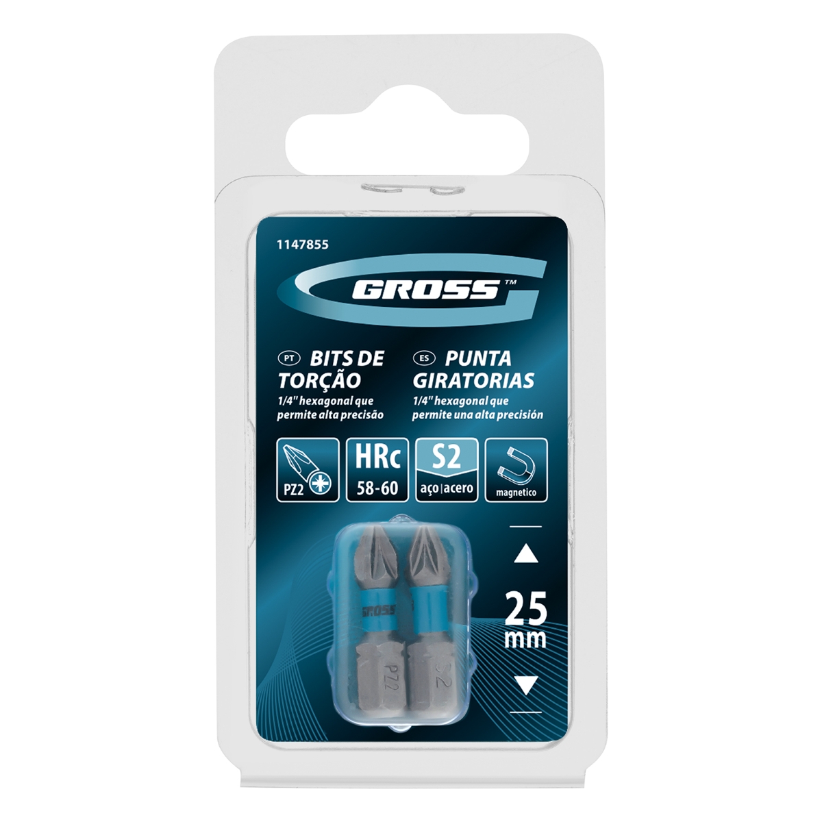 Bit Torção PZ2 25mm Gross 1147855 2PCS Impacto Aço