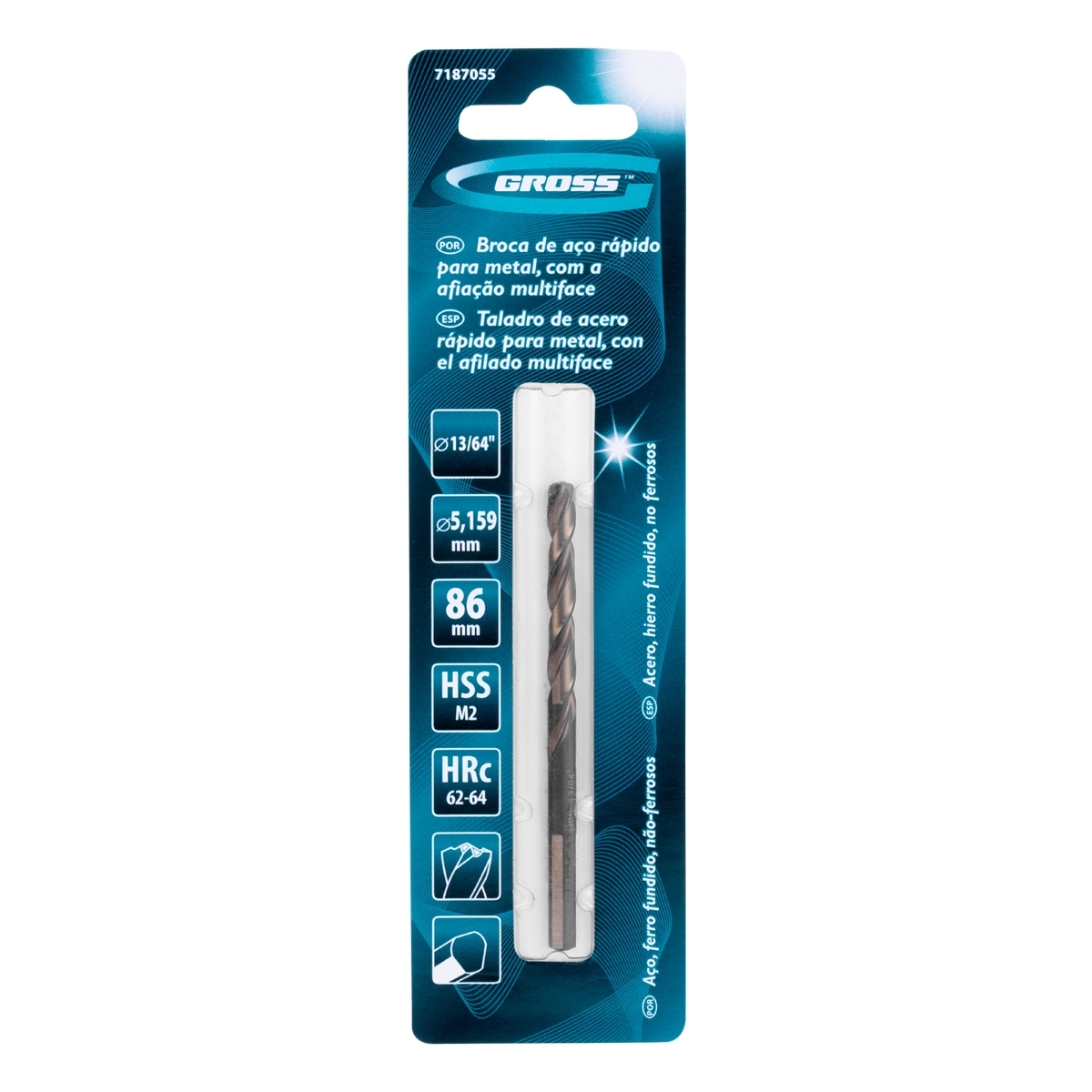 Broca Aço Rápido Profissional 13/64'' 86mm Aço M2 Industrial 1PC Gross