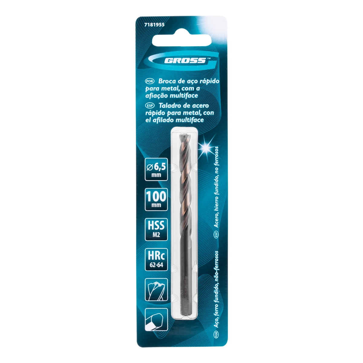 Broca Aço Rápido Profissional Industrial Metal 6.5x100mm Aço M2 1PC Gross 7181955