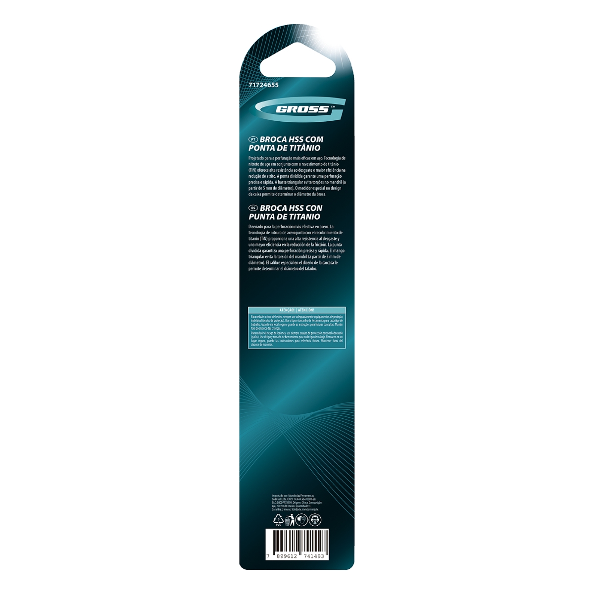 BROCA ACO RAPIDO PROFISSIONAL NITRETO DE TITANIO PARA METAL 12MM 1 PEÇAS GROSSA Broca de Metal Gross Golden Tip é a ferramenta ideal para profissionais da serralharia que buscam alta performance e durabilidade. Fabricada em aço HSS-TiN, esta broca de 12mm oferece precisão excepcional na perfuração de peças de aço, garantindo furos de alta qualidade e resistência. O revestimento de nitreto de titânio proporciona maior resistência ao desgaste e à corrosão, prolongando a vida útil da ferramenta mesmo em condições de uso intensivo. A ponta Split point facilita o início da perfuração, eliminando a necessidade de marcação prévia e economizando tempo. Com a Broca Gross Golden Tip, você terá um desempenho superior, maior produtividade e resultados impecáveis em seus projetos de serralharia. A embalagem individual garante a proteção e organização da ferramenta, mantendo-a sempre pronta para uso. Invista em qualidade e eficiência com a Broca de Metal Gross Golden Tip e eleve o nível do seu trabalho!Especificações País de fabricação: China Material: Aço HSS-TiN Revestimento: Nitreto de Titânio Classe de precisão: A1 Diâmetro: 12mmItens Inclusos 1 Broca de Metal Gross Golden TipPerguntas Frequentes (FAQ) Pergunta: Em quais materiais posso utilizar esta broca?Resposta: Esta broca é ideal para perfurar peças de aço. Pergunta: A broca é resistente ao superaquecimento?Resposta: Sim, a broca é projetada para resistir ao superaquecimento durante o uso intensivo, garantindo sua durabilidade. Pergunta: Qual a vantagem da ponta Split point?Resposta: A ponta Split point facilita o início da perfuração, eliminando a necessidade de marcação prévia. Pergunta: A embalagem protege a broca durante o transporte?Resposta: Sim, a broca é fornecida em uma embalagem individual que protege contra danos e facilita o armazenamento. Pergunta: Qual a garantia deste produto?Resposta: Garantia legal: 90 dias.