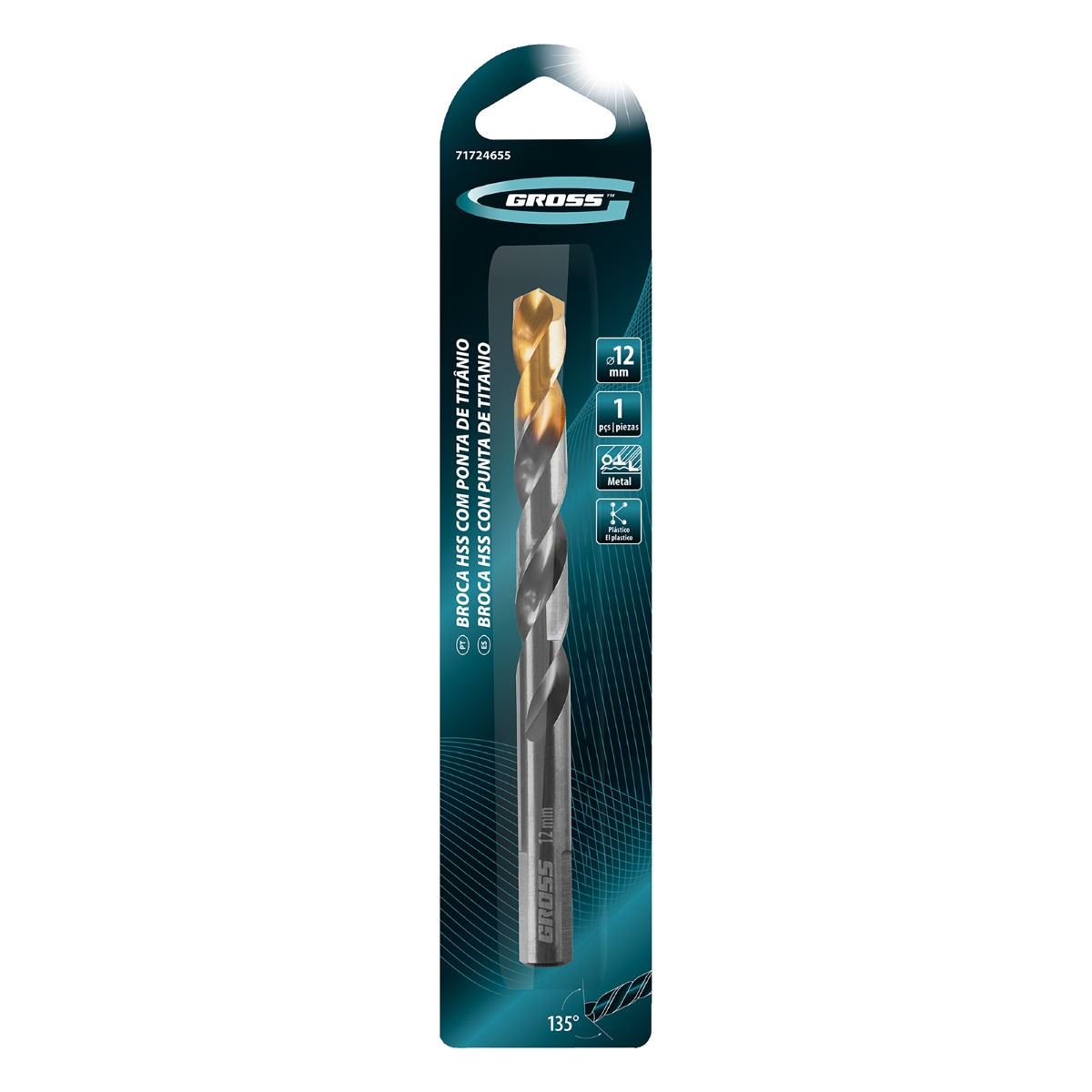 Broca Aço Rápido 12mm Nitreto Titânio Profissional Gross Metal 1PC