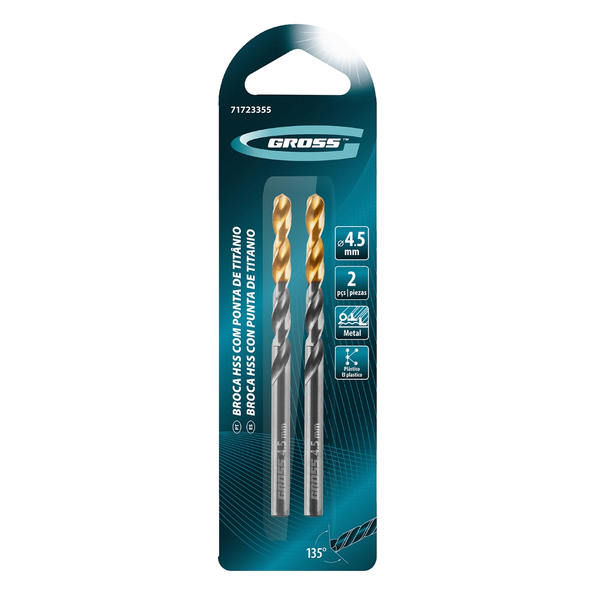 Broca Aço Rápido Nitreto Titânio 4,5mm 2pcs Profissional Metal Gross Golden Tip