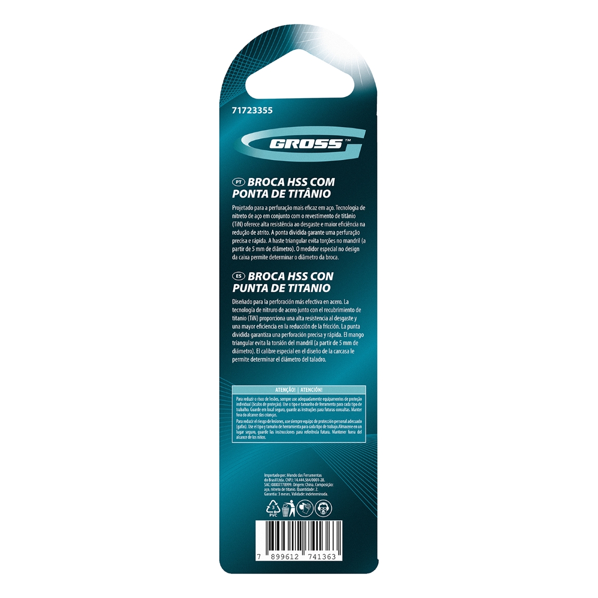 BROCA ACO RAPIDO PROFISSIONAL NITRETO DE TITANIO PARA METAL 4,5MM 2PCS GROSS A Broca de Metal Gross Golden Tip é a ferramenta ideal para profissionais da serralharia que buscam alta performance e durabilidade. Fabricada em aço HSS-TiN, esta broca de 4,5mm foi projetada para realizar perfurações precisas e de alta qualidade em peças de aço, resistindo ao superaquecimento e ao desgaste. O revestimento de nitreto de titânio garante uma vida útil prolongada, mesmo em condições de uso intensivo. A embalagem com 2 unidades oferece um excelente custo-benefício para projetos de grande volume, assegurando que você sempre tenha uma broca sobressalente à mão. Com o design inovador de ponta Split point, a perfuração se inicia de forma rápida e precisa, sem a necessidade de marcação prévia, economizando tempo e aumentando a sua produtividade. Invista na Broca de Metal Gross Golden Tip e eleve a qualidade do seu trabalho, garantindo furos perfeitos e resultados excepcionais em cada aplicação. Especificações País de fabricação: China Material: Aço HSS-TiN Revestimento: Nitreto de Titânio Diâmetro: 4,5mm Classe de precisão: A1 Itens Inclusos 2 Brocas de Metal Gross Golden Tip 4,5mm Perguntas Frequentes (FAQ) Pergunta: Em quais materiais posso utilizar esta broca?Resposta: Esta broca é ideal para perfurações em peças de aço. Pergunta: A broca resiste ao superaquecimento?Resposta: Sim, a broca é projetada para resistir ao superaquecimento durante o uso intensivo, garantindo sua durabilidade. Pergunta: Qual a vantagem do revestimento de nitreto de titânio?Resposta: O revestimento proporciona maior resistência ao desgaste e à corrosão, prolongando a vida útil da broca. Pergunta: A broca precisa de marcação prévia para iniciar a perfuração?Resposta: Não, o design com ponta Split point permite iniciar a perfuração diretamente, sem a necessidade de marcação. Pergunta: Qual a garantia deste produto?Resposta: Garantia legal: 90 dias.