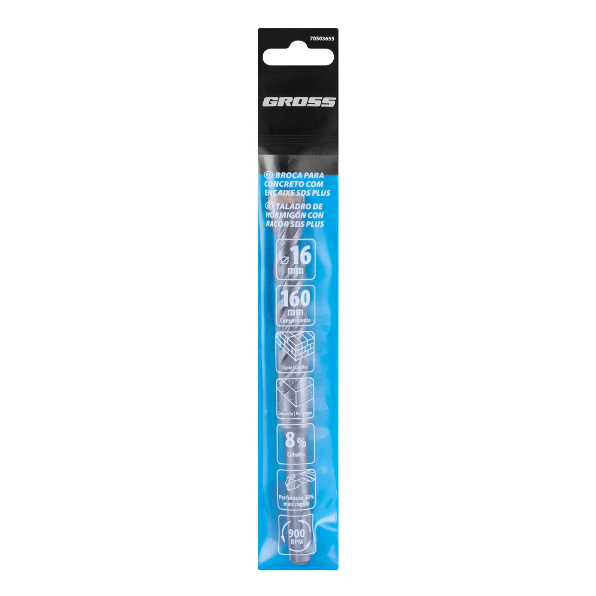 Broca Concreto SDS Plus 16x160mm Tungstênio Cobalto 1PC Gross