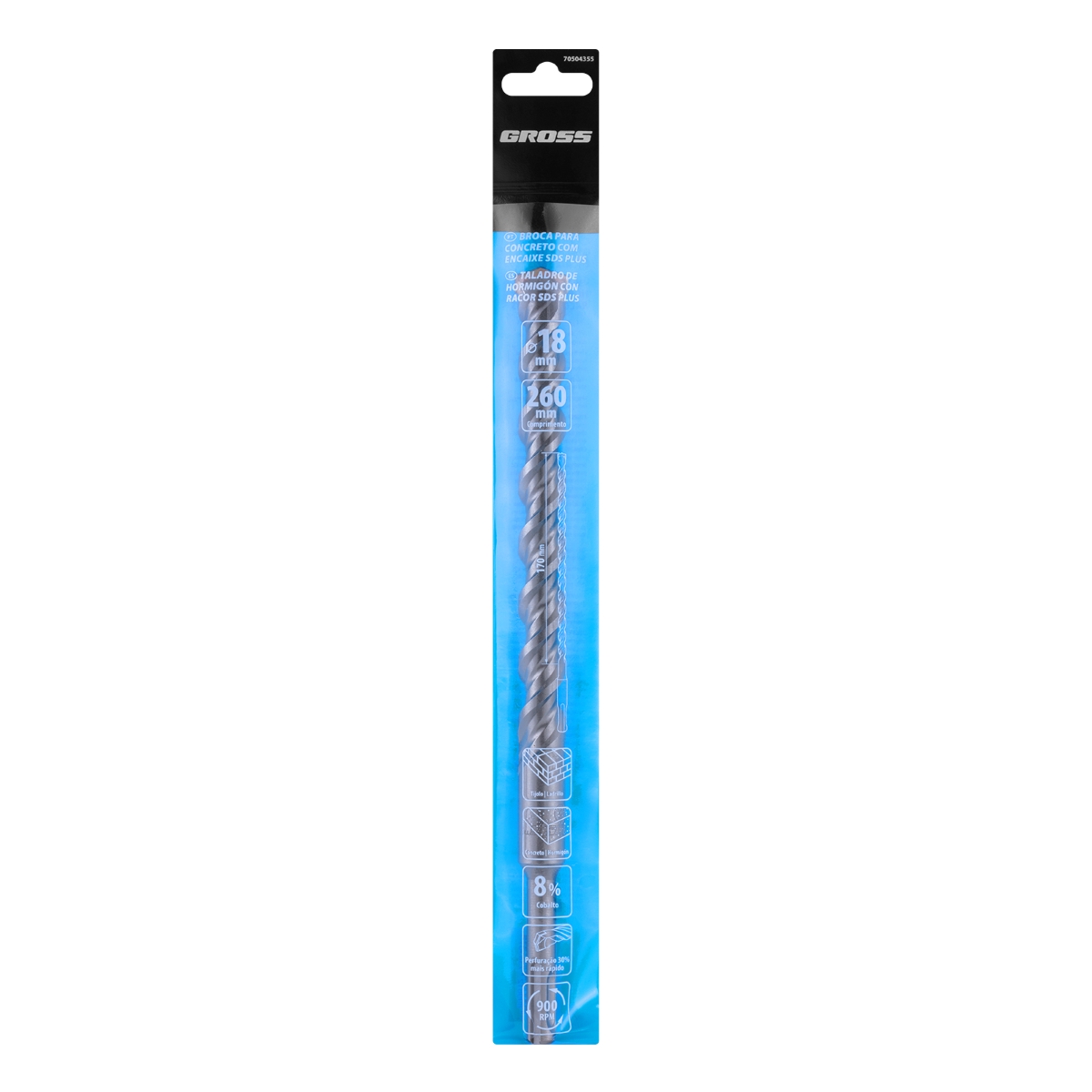 Broca Concreto SDS Plus 18x260mm Tungstênio Cobalto 1PC Gross