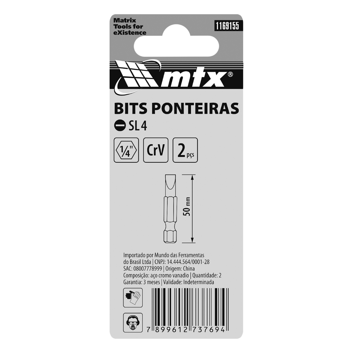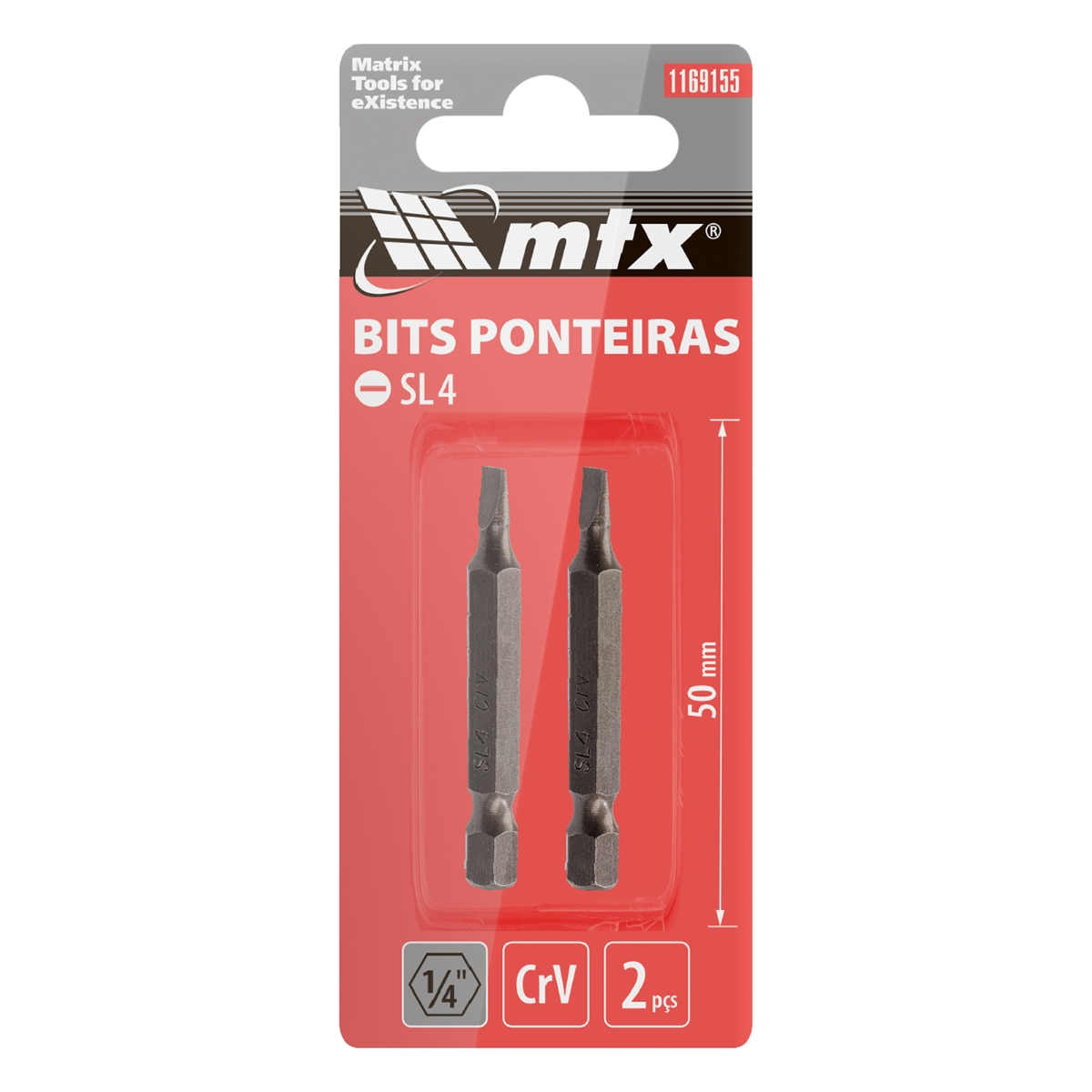Bits Fenda SL4 50mm Cromo Vanádio 2 Unidades MTX 1/4 Polegada Aço CrV