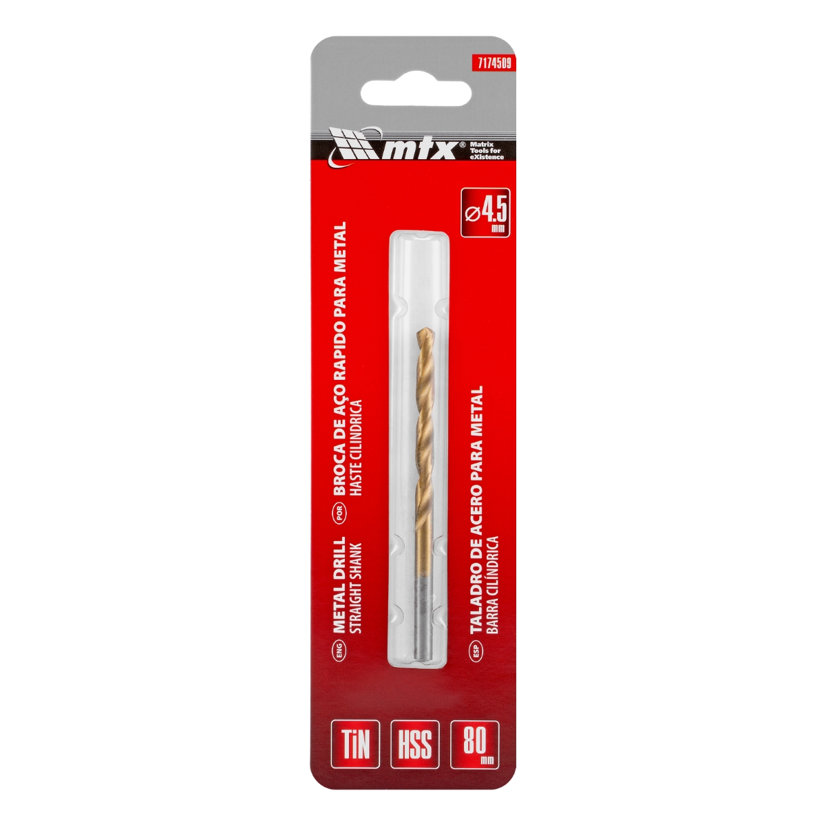 Broca Aço Rápido Nitreto Titânio 4,5mm Haste Cilíndrica 1PC MTX Profissional