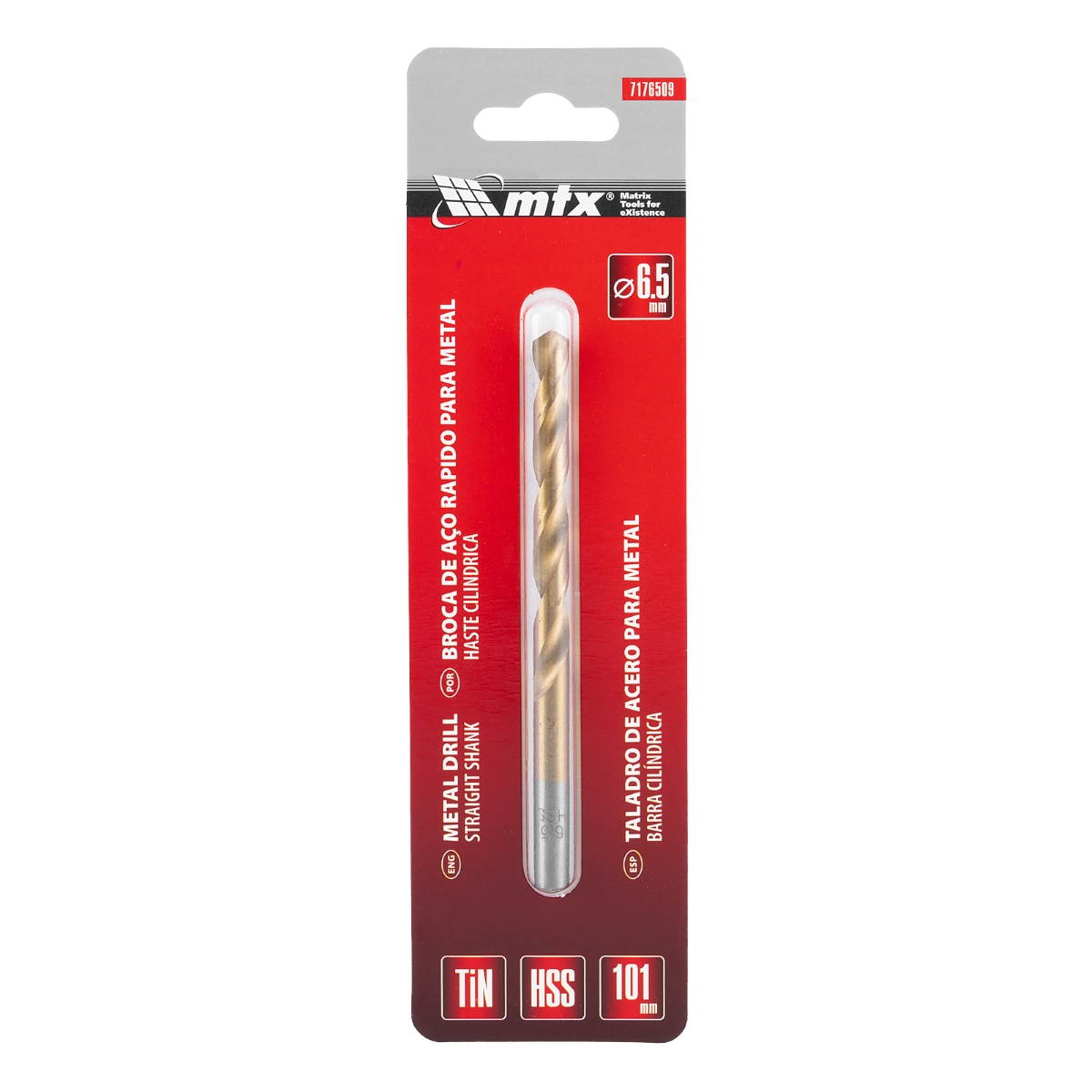 Broca Aço Rápido Nitreto de Titânio 6,5mm Haste Cilíndrica 1PC MTX Profissional