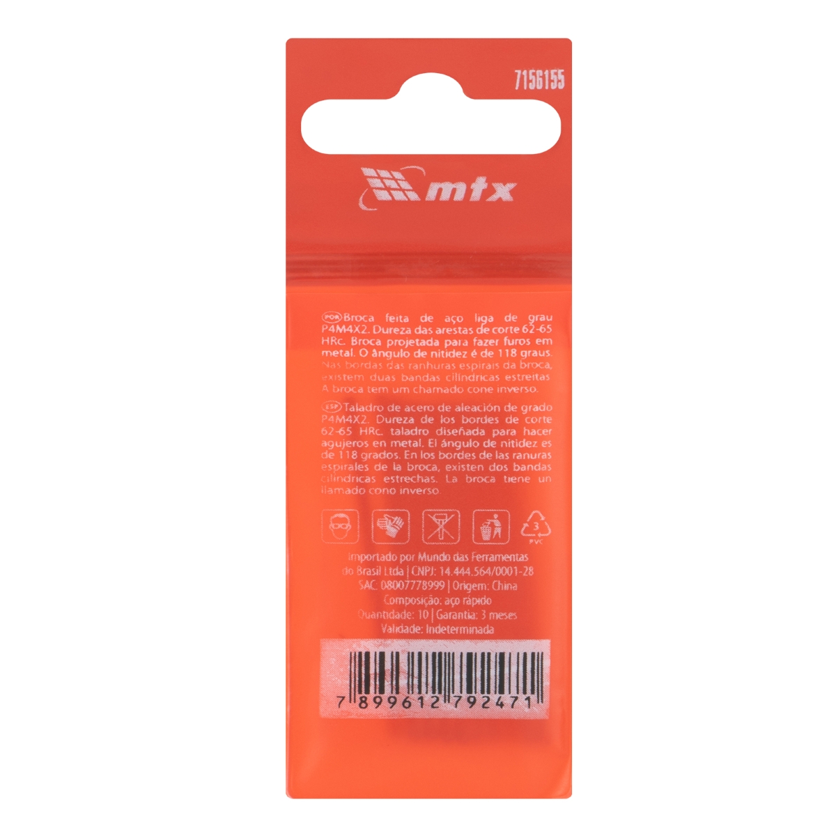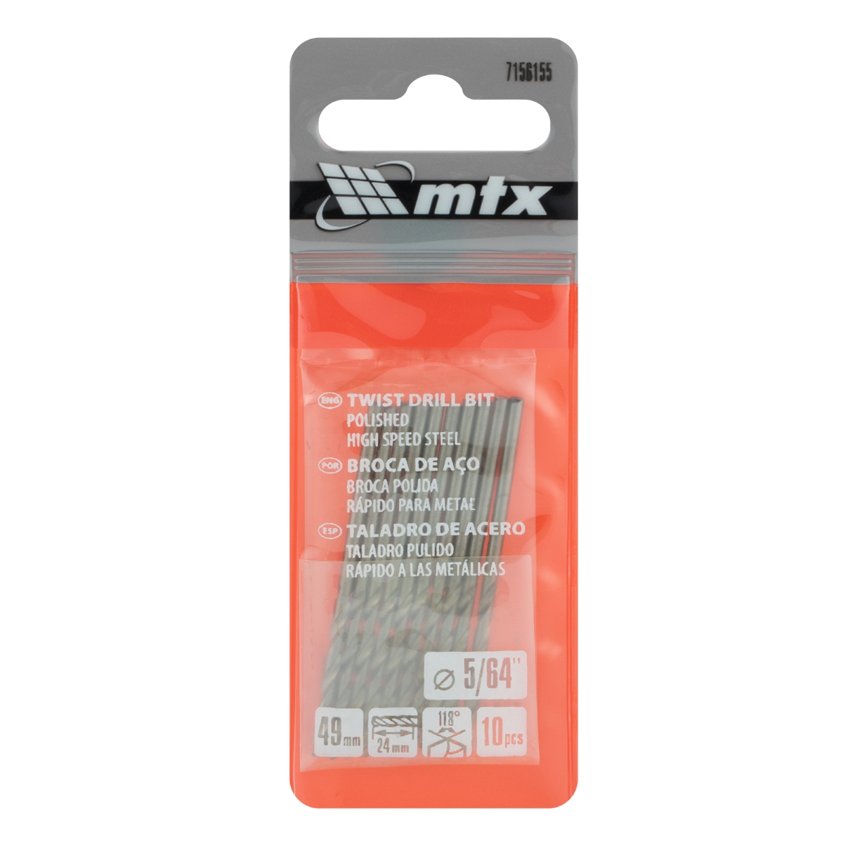 Broca Aço Rápido Standard Para Metal Haste Cilíndrica 10Pçs 5/64Pol MTX Alta Precisão