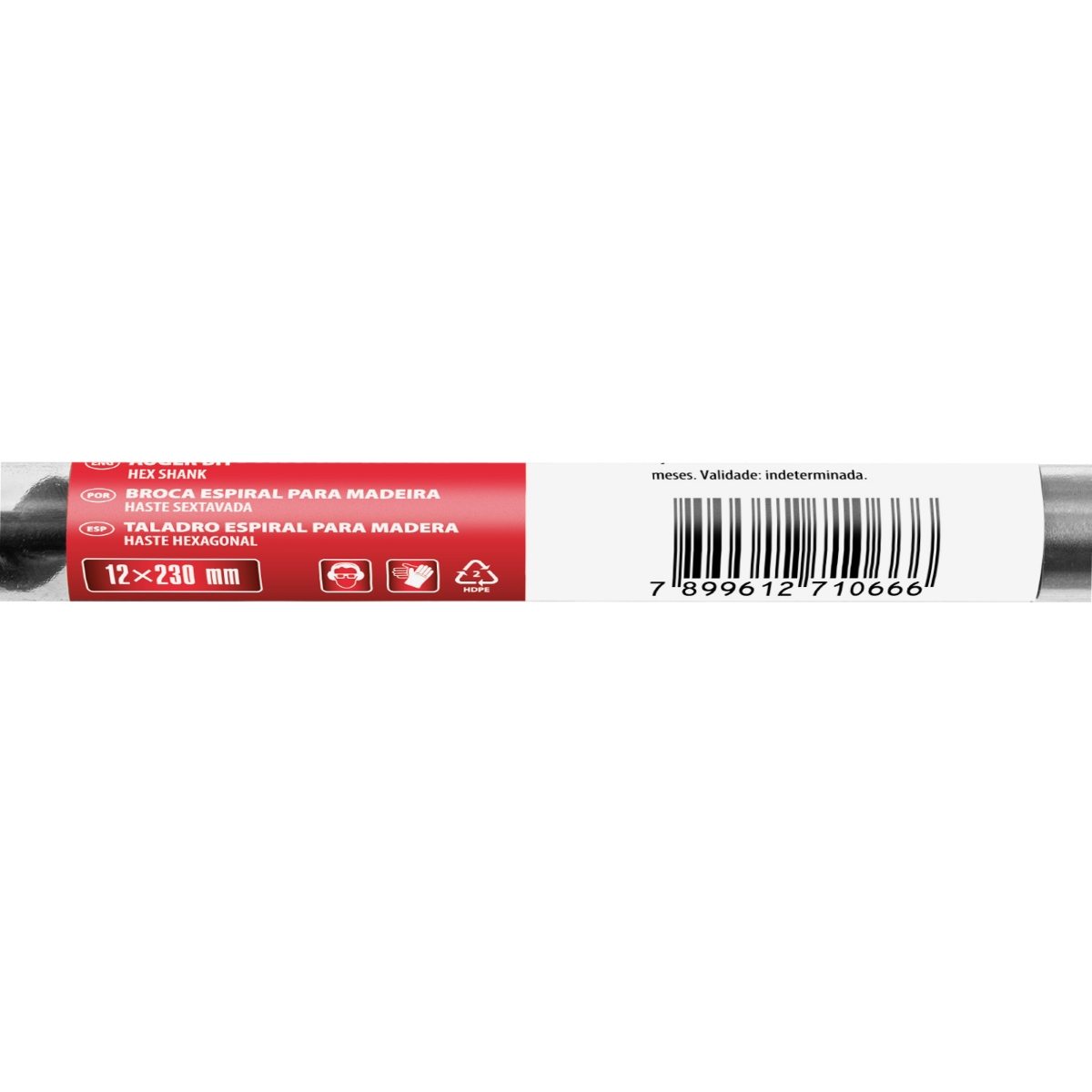 Broca Espiral Madeira 12x230mm Haste Sextavada 10mm Aço 45 118° MTX 701029