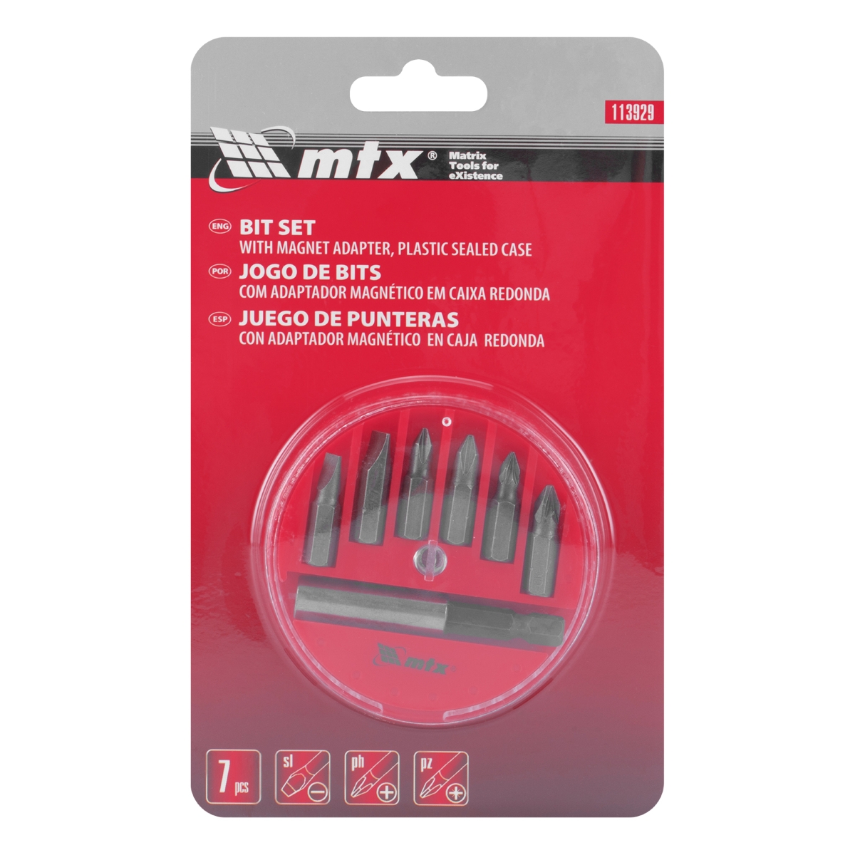 Jogo de Bits Magnético 7 Peças Aço 45X 1/4'' 25mm SL/PH/PZ MTX 113929