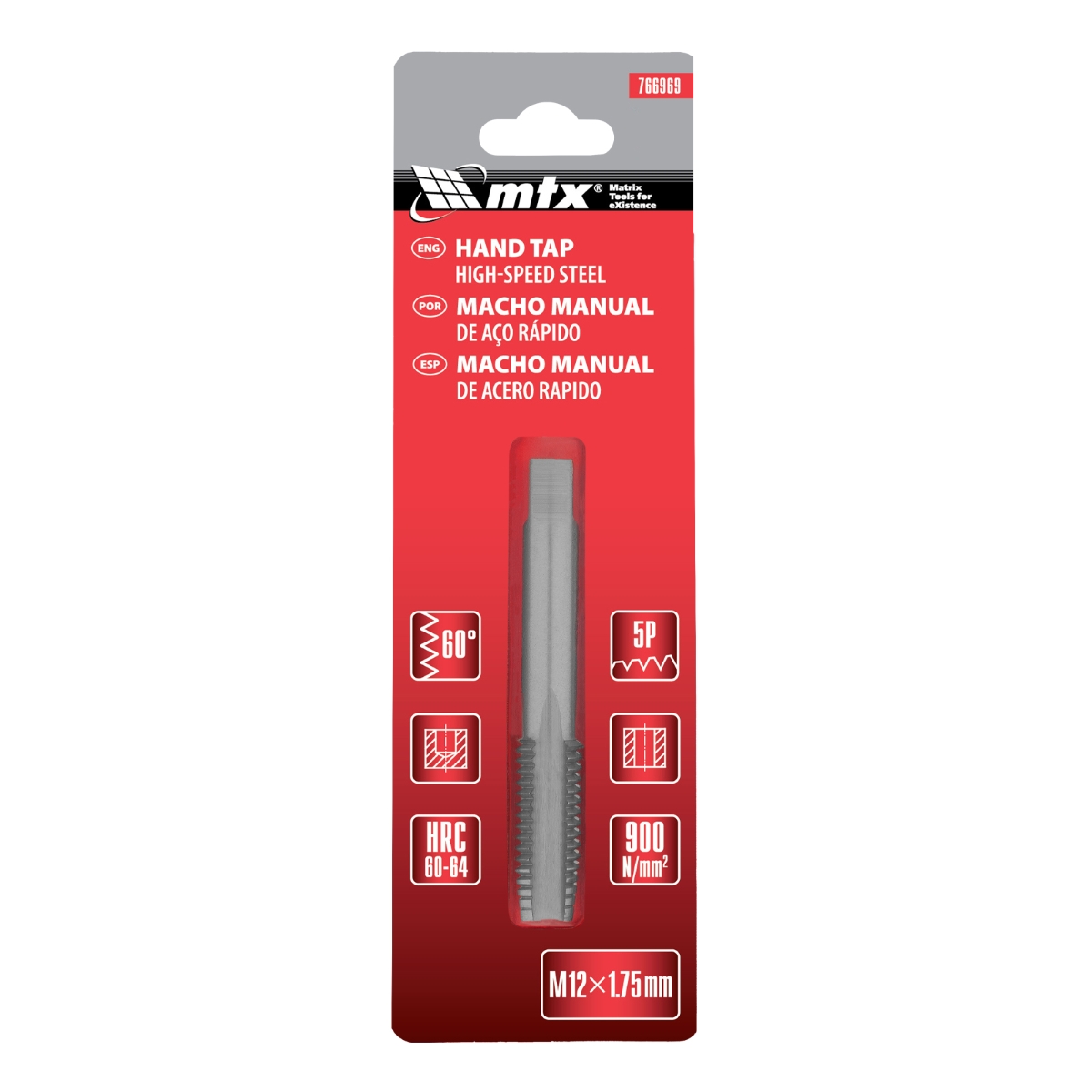 Macho Manual Aço HSS M12 x 1.75mm Precisão 4H Direita MTX