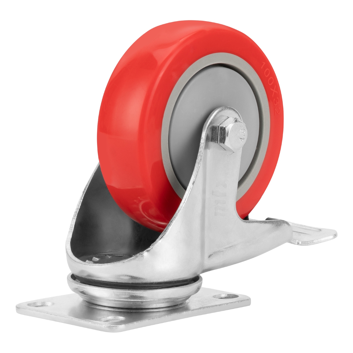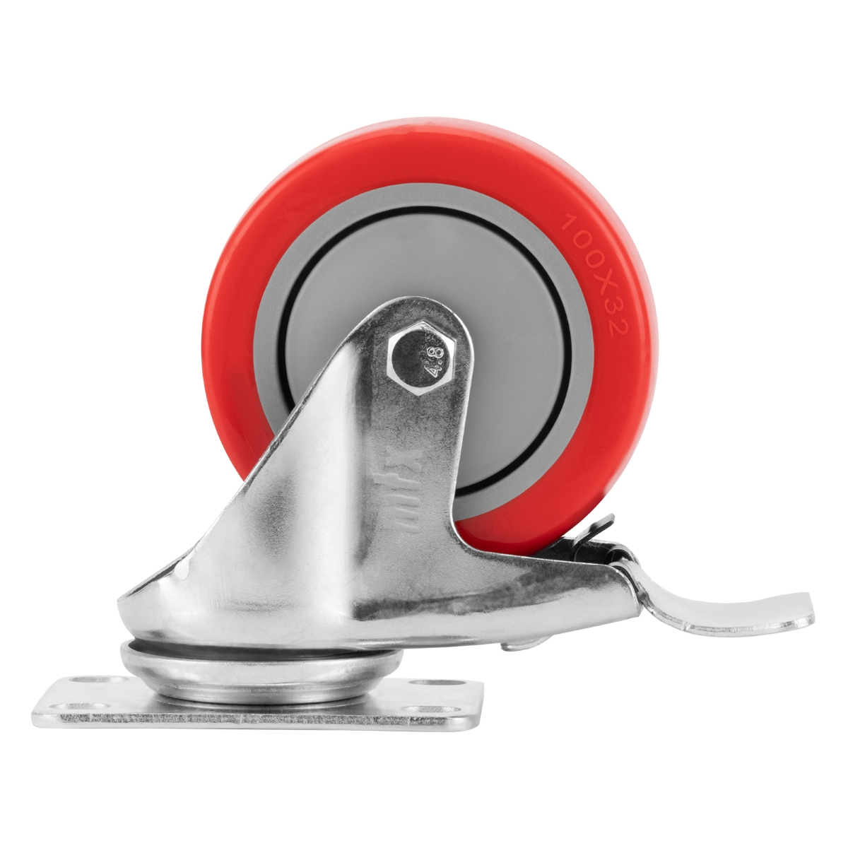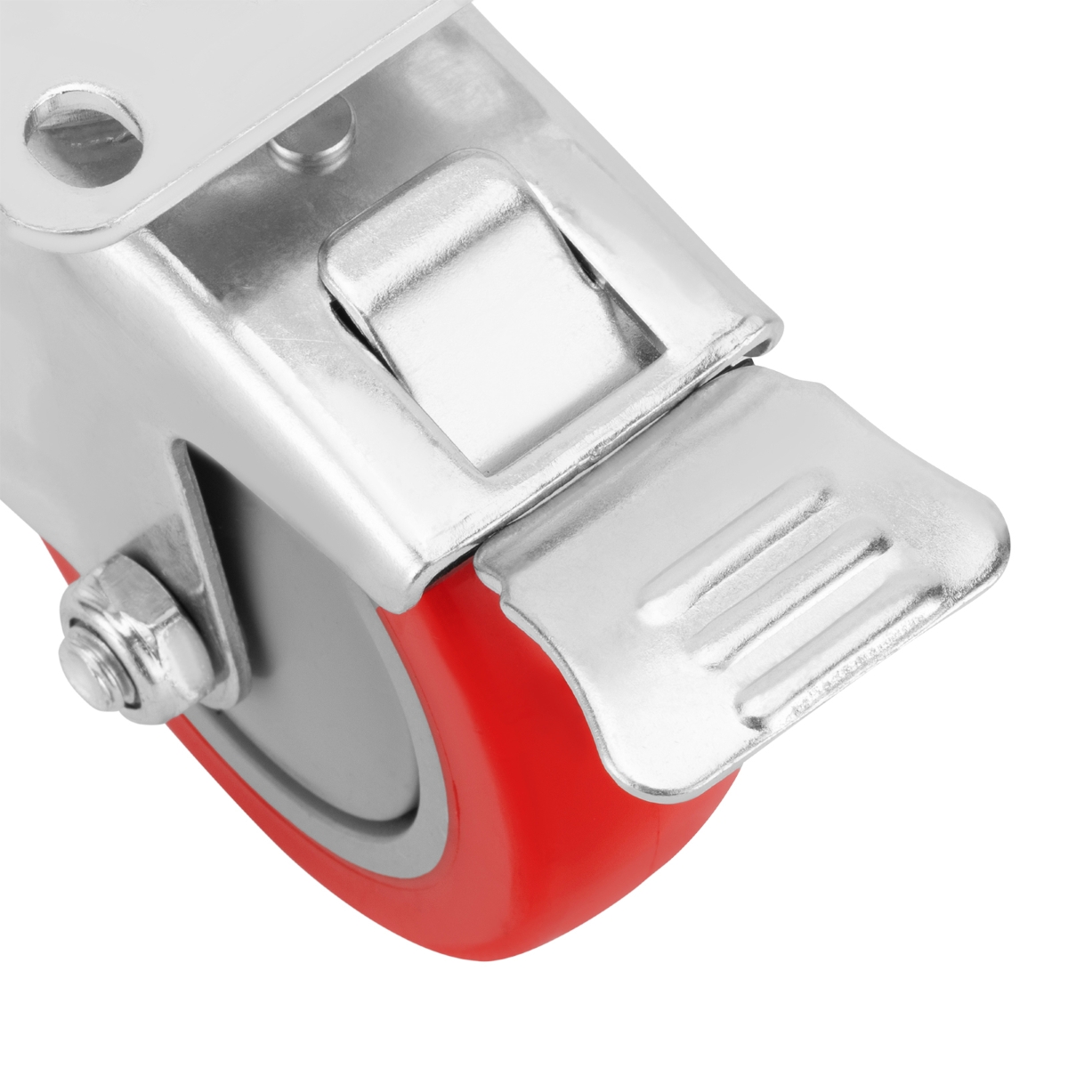 Rodízio Borracha Vermelha PVC PU Fixo 4 Polegadas 100mm Carga 50kg com Freio MTX