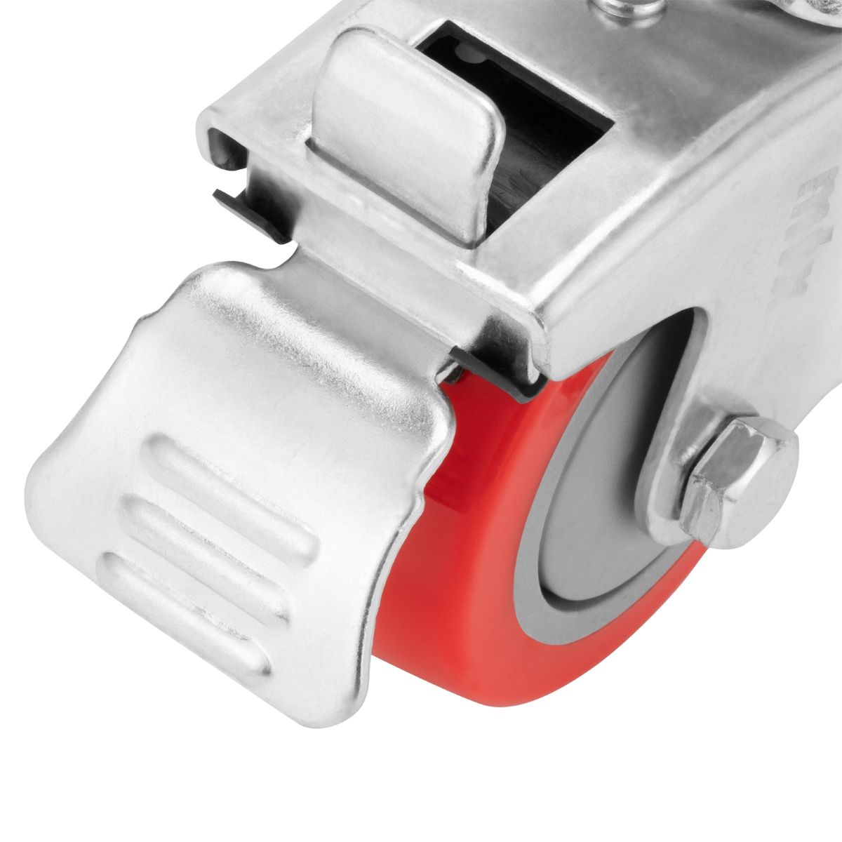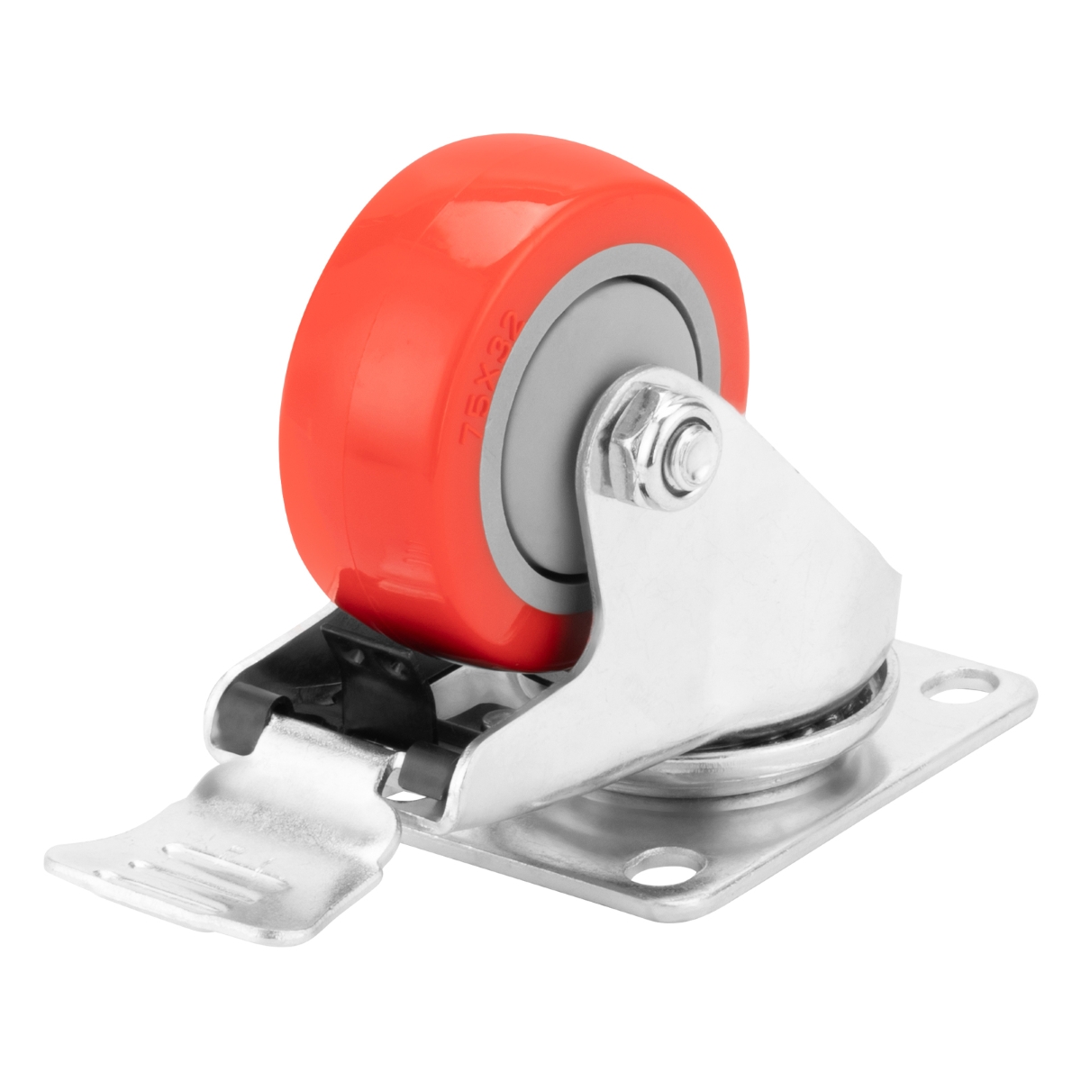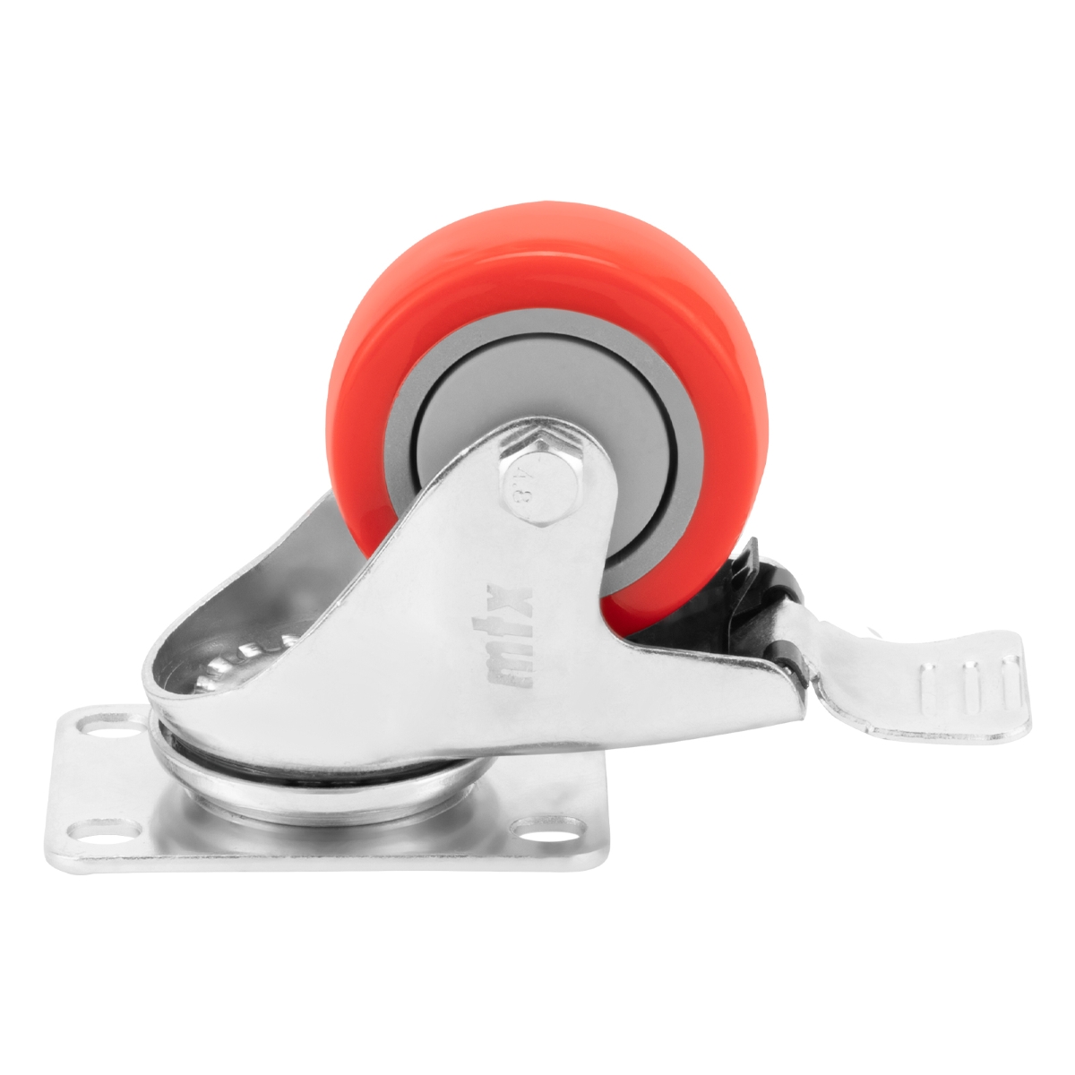 Rodízio Borracha Vermelha 3'' 75mm PVC Poliuretano Com Freio 50kg Giratório MTX