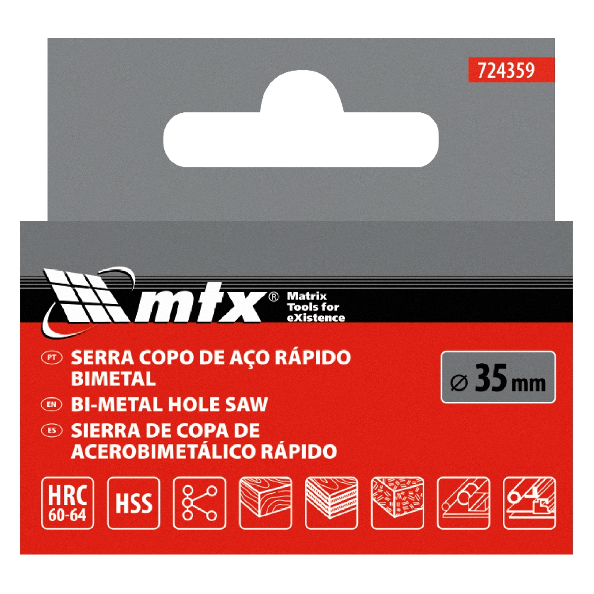 Serra Copo Bimetálica 35mm MTX 5/8'' 18UNF Aço Rápido para Metal