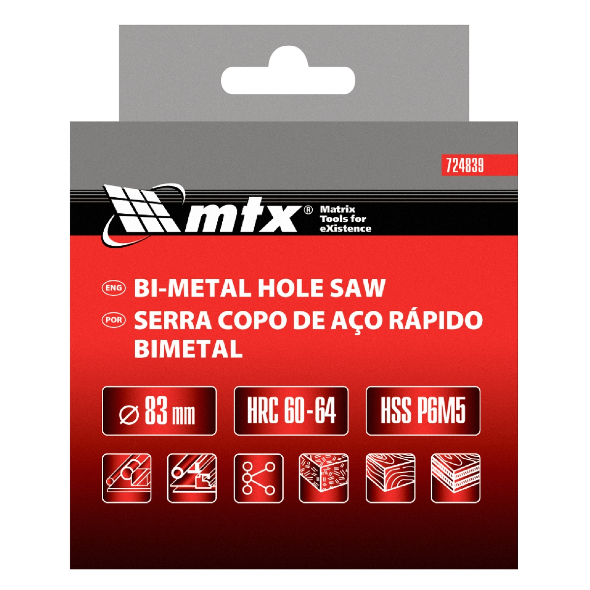 Serra Copo Bimetálica 83mm 5/8'' 18UNF Metal Madeira Plástico MTX 724839