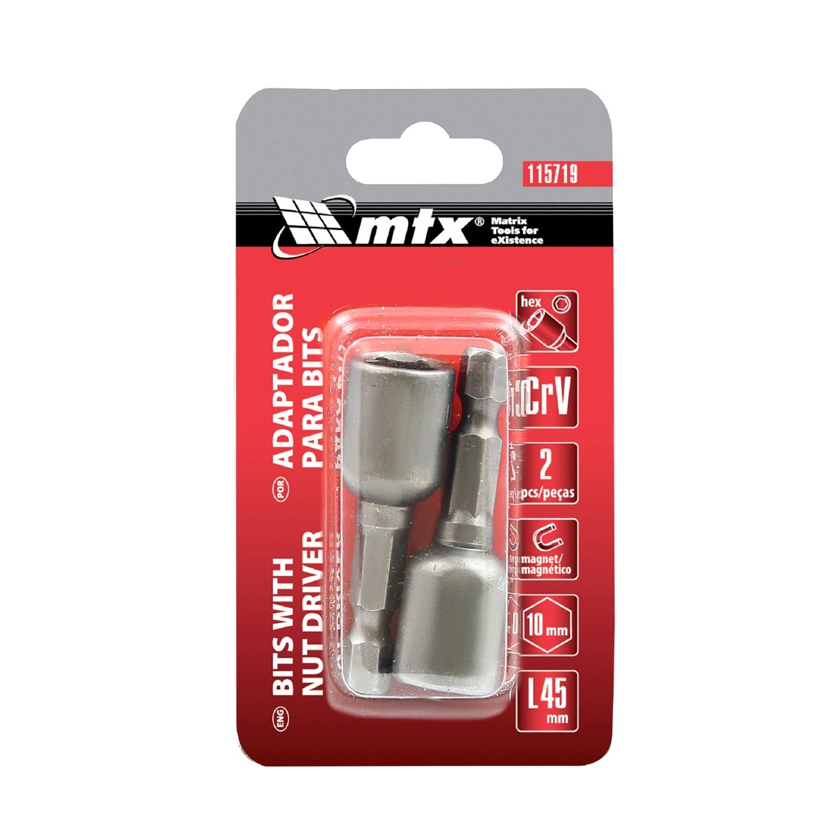 Soquete Magnético Para Parafusadeira 45mm x 10mm 2pcs MTX Aço 40ACR Resistente Corrosão
