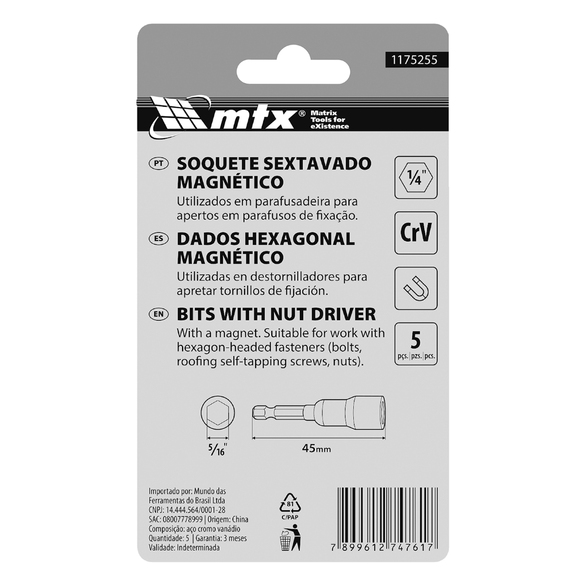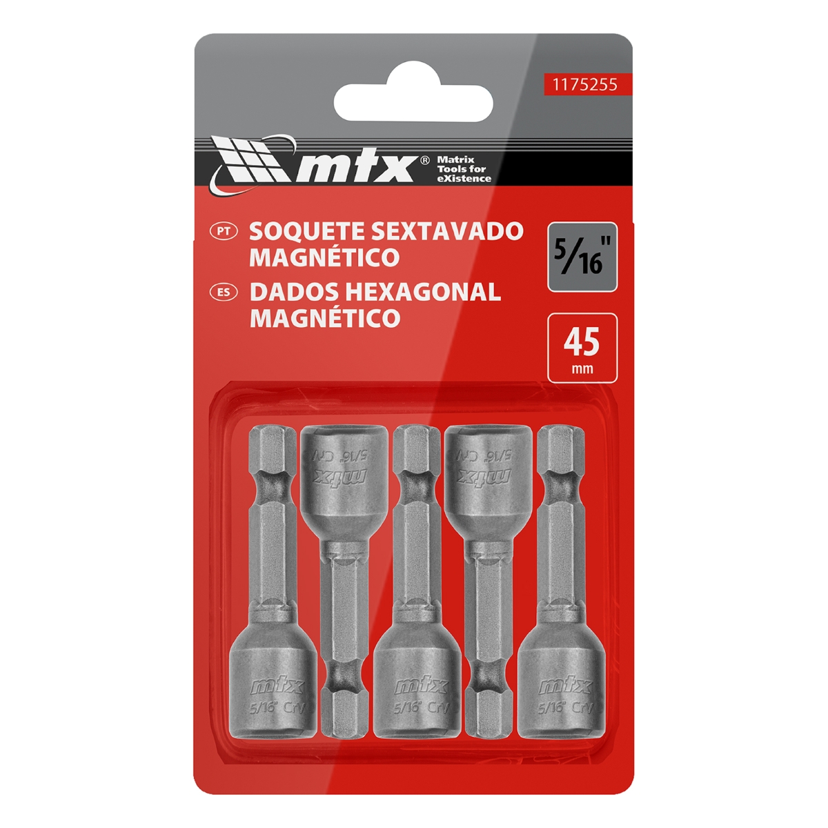 Soquete Magnético Para Parafusadeira 5/16'' L 45mm 5 Peças Aço CrV MTX 1175255