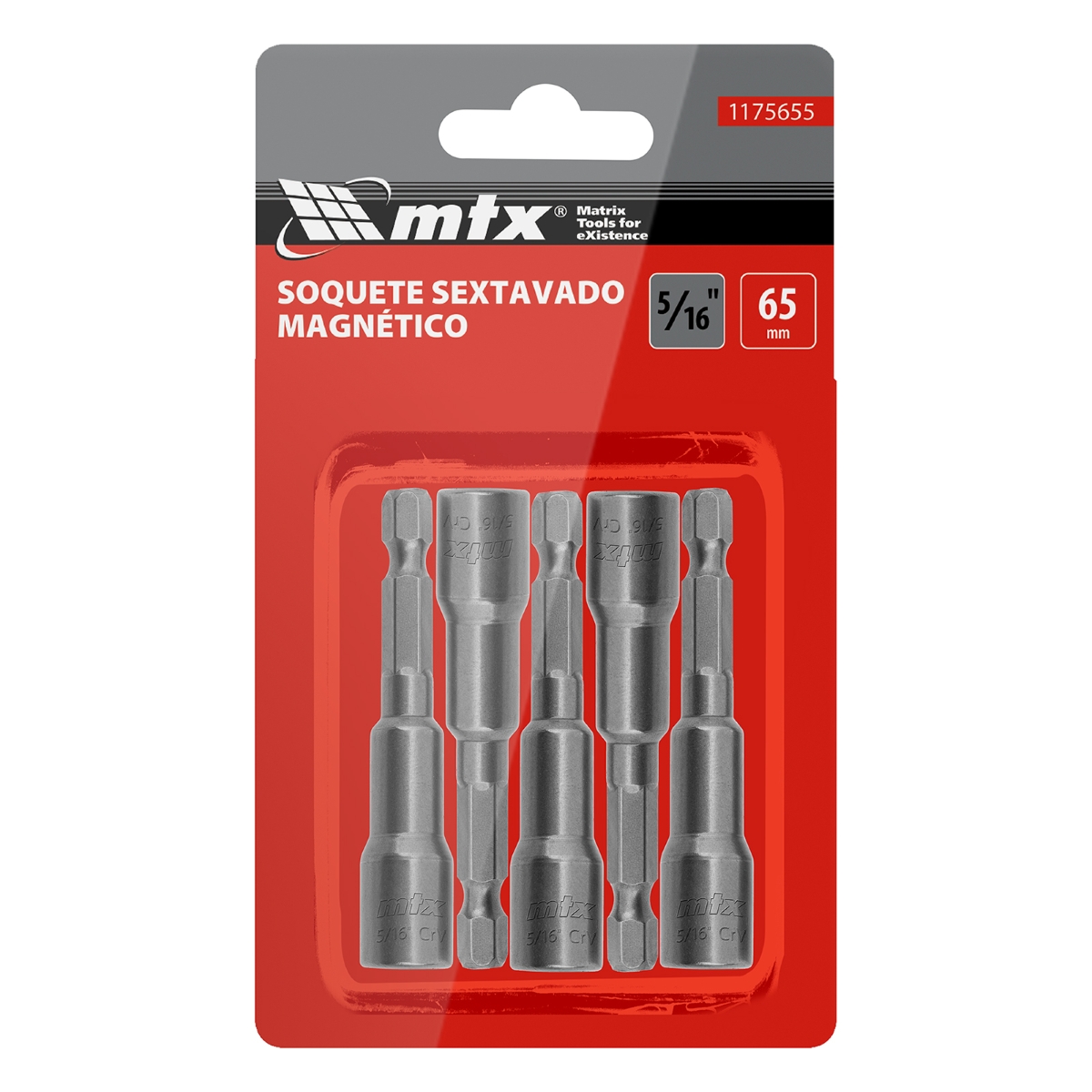Soquete Magnético Para Parafusadeira 5/16'' L 65mm 5 Peças Aço CrV MTX 1175655