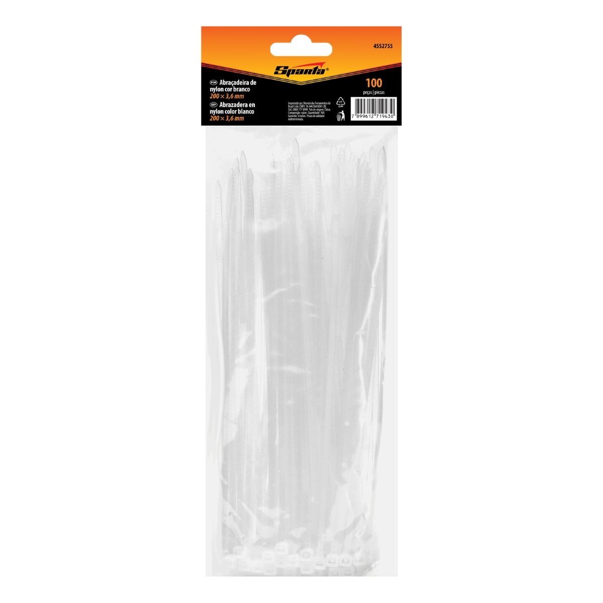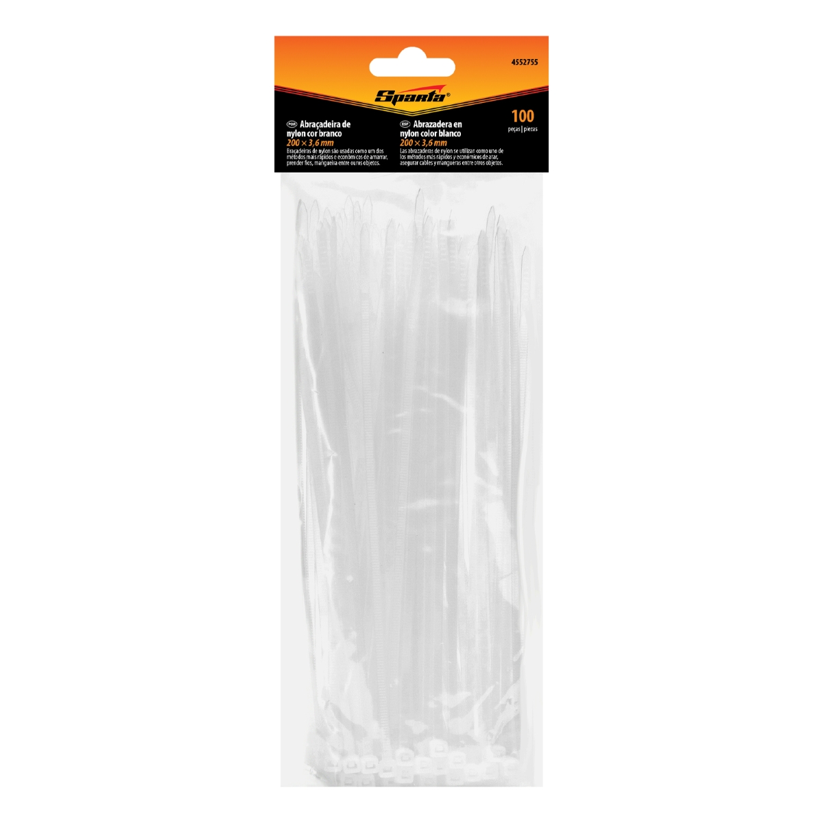 Abraçadeira Plástico 200x3,6mm 100pcs Branco Sparta 4552755 Resistente UV