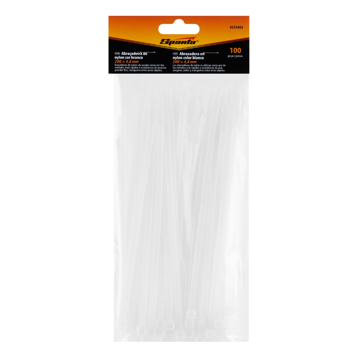 Abraçadeira Plástico 200x4.8mm Branca 100pcs Sparta 4553455 Fixação Cabos