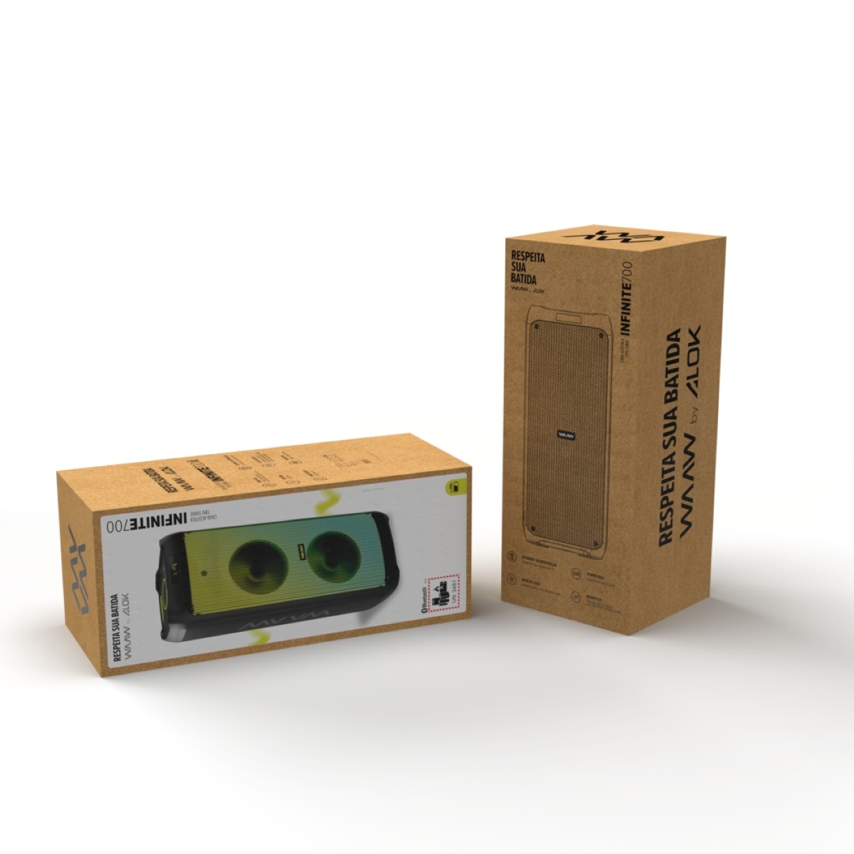 CAIXA DE SOM TORRE BLUETOOTH TWS 700W RMS INFINITE 700 Bivolt Transforme qualquer ambiente em uma verdadeira festa com a Caixa de Som Tipo Torre WAAW INFINITE 700! Com impressionantes 700W RMS de potência e tecnologia Bluetooth 5.0, você garante uma conexão rápida e estável com seus dispositivos favoritos, em um alcance de até 10 metros. Desfrute de até 20 horas* de música com a bateria interna de longa duração, e não se preocupe em ficar sem som, pois a caixa é compatível com carregamento via power bank (não incluso). A INFINITE 700 oferece um espetáculo visual com seu show de luzes LED, que conta com 6 modos de iluminação para criar efeitos dinâmicos e vibrantes, sincronizados com o ritmo da sua música. Além disso, possui duas entradas P10 para microfone, uma entrada para guitarra, entradas USB e auxiliar IN, e suporte para cartão Micro SD, permitindo que você conecte diversos dispositivos e personalize sua experiência sonora. Ajuste o volume dos microfones e da guitarra com os controles dedicados, personalize o som com os ajustes de eco, treble e volume, e explore os quatro efeitos sonoros integrados para adicionar ainda mais emoção à sua playlist. Com a tecnologia TWS (True Wireless Stereo), você pode conectar duas caixas INFINITE 700 via Bluetooth para um som estéreo imersivo e potente. As rodas para transporte facilitam a mobilidade, tornando-a perfeita para grandes encontros e eventos. A WAAW INFINITE 700 é a escolha ideal para quem busca potência, versatilidade e um show de luzes para animar qualquer ocasião. Especificações Impedância do Speaker (ohms): Tweeter: 4 ohms, Woofer: 6 ohms Tamanho Driver (pol): 12″ (woofer) Resposta de Frequência (Hz): 60Hz-16KHz Versão Bluetooth: 5.0 Tempo Reprodução Música (h): 20 horas* (50%) Tempo de Carregamento (h): Até 4 Capacidade da Bateria (mAh): 7500 Tipo da Bateria: Chumbo-ácido Potência de Saída (W) (RMS): 700 Entrada de Áudio (Line In): Sim Entrada USB: Sim Entrada Cartão SD: Sim Fonte de Alimentação: Interna – 100V~240V 50Hz~60Hz Itens Inclusos Caixa de Som WAAW by ALOK Infinite 700 Acessórios e Componentes Manual de Instruções Indicações de Uso Ideal para festas e eventos em ambientes internos e externos. Perfeita para karaokê em casa ou em eventos com amigos. Excelente para sonorização de pequenos shows e apresentações musicais. Perguntas Frequentes (FAQ) Pergunta: Qual a potência da caixa de som?Resposta: A Caixa de Som Torre WAAW INFINITE 700 possui 700W RMS de potência. Pergunta: Qual o tempo de duração da bateria?Resposta: A bateria oferece até 20 horas de reprodução contínua com o volume em 50%. Pergunta: A caixa de som é bivolt?Resposta: Sim, a caixa de som é bivolt (100V~240V). Pergunta: Qual a garantia do produto?Resposta: Garantia do Produto: 1 Ano (3 meses de garantia legal e mais 9 meses de garantia especial concedida pelo fabricante). Bateria: 6 Meses (3 meses de garantia legal e mais 3 meses de garantia especial concedida pelo fabricante).