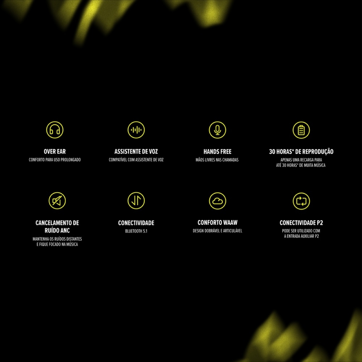 FONE DE OUVIDO BLUETOOTH CANCELAMENTO DE RUÍDO SENSE 310 Bivolt: Imersão Sonora e Liberdade Sem Fios Experimente a liberdade de um som impecável com o Fone de Ouvido Bluetooth WAAW SENSE 310. Projetado para quem busca conforto e qualidade, este headphone over-ear oferece até 30 horas de reprodução contínua, permitindo que você aproveite suas músicas, podcasts e chamadas por muito mais tempo. A tecnologia de cancelamento de ruído ANC bloqueia as distrações externas, proporcionando uma experiência sonora imersiva, seja no trabalho, em viagens ou em momentos de lazer. Com conectividade Bluetooth 5.1, a conexão é rápida, estável e eficiente, garantindo a transmissão perfeita do áudio. Além disso, o design dobrável e articulável facilita o transporte, tornando-o o companheiro ideal para o dia a dia. E para aqueles momentos em que a bateria acaba, a entrada P2 de 1,2m permite continuar curtindo sua música sem interrupções. Controle suas músicas, atenda chamadas e ajuste o cancelamento de ruído com o controle touch intuitivo, tudo ao alcance dos seus dedos. O WAAW SENSE 310 é a combinação perfeita de estilo, conforto e tecnologia, elevando sua experiência sonora a um novo nível. Especificações Cor: Preto e Verde Material: Polimetros e Metais Tamanho do Driver: 40mm Comprimento do Cabo: Cabo de carregamento: 30cm, cabo P2: 1,2m Impedância do Speaker: 32 ohms Resposta de Frequência: 20~20kHz Tipo de Conexão: USB-C/P2 Sensibilidade Microfone: -42dB±3dB Sensibilidade Cancelamento Ruído Microfone: -39dB±1dB Sensibilidade do Driver a 1kHz1mW: 115± 3dB Potência de Saída: 20mW (RMS) Versão Bluetooth: 5.1 Potência Emissão Bluetooth: 6dBm Modulação do Emissor Bluetooth: GFSK, π/4-DQPSK, 8-DPSK Rotação das Conchas: 90º Dobráveis: Sim Regulagem de Altura: Sim Itens Inclusos Fone de Ouvido Sense 310 Acessórios Manual de Instruções Indicações de Uso Para audição de músicas com cancelamento de ruído durante o trabalho remoto. Ideal para viagens de avião ou longas jornadas, proporcionando conforto e entretenimento. Perfeito para estudantes que precisam de concentração em ambientes barulhentos. Perguntas Frequentes (FAQ) Pergunta: Qual a duração da bateria do fone?Resposta: O fone de ouvido oferece até 30 horas de reprodução com o volume em 50%. A duração pode variar dependendo do tipo de música e do volume utilizado. Pergunta: O fone é compatível com assistentes de voz?Resposta: Sim, o WAAW SENSE 310 é compatível com o assistente de voz do seu smartphone, tablet ou notebook. Pergunta: Posso usar o fone sem Bluetooth?Resposta: Sim, o fone possui entrada auxiliar P2 de 1,2m, permitindo que você o utilize mesmo quando a bateria estiver descarregada. Pergunta: Qual a garantia do produto?Resposta: Garantia legal: 1 ano. Pergunta: O fone é bivolt?Resposta: Sim, o fone de ouvido é bivolt, adaptando-se automaticamente à voltagem da tomada.