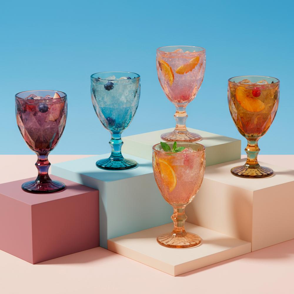 6 Taças para Água Lyor Diamond de Vidro Lilás 320ml