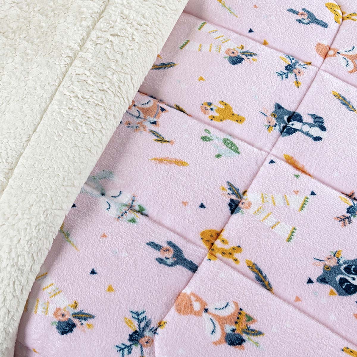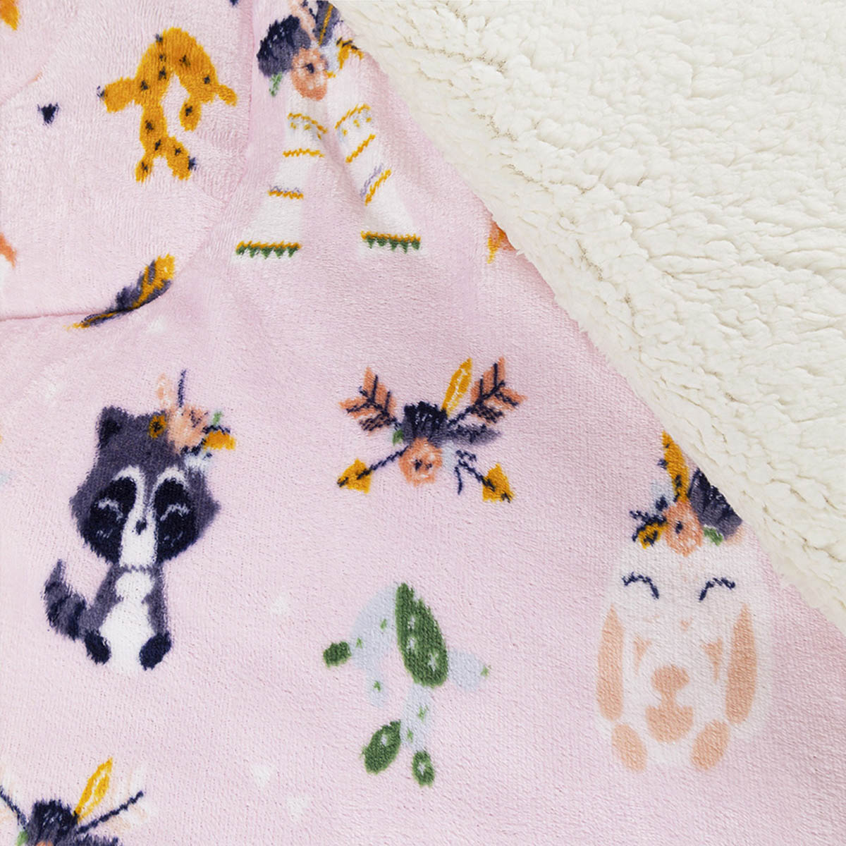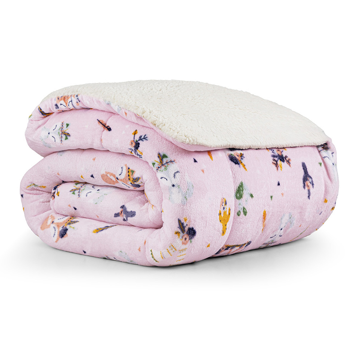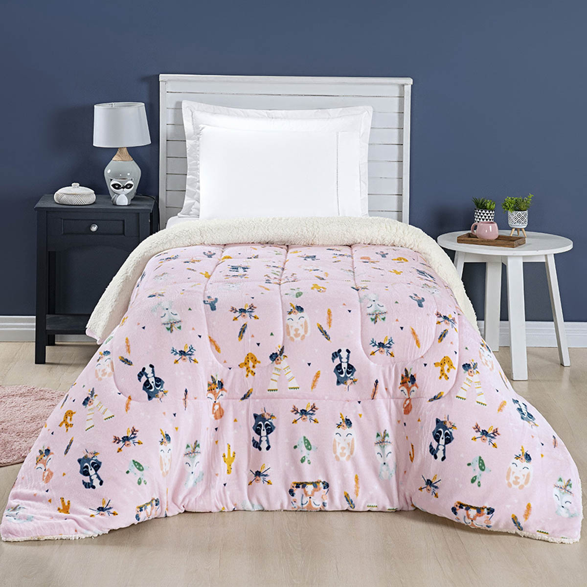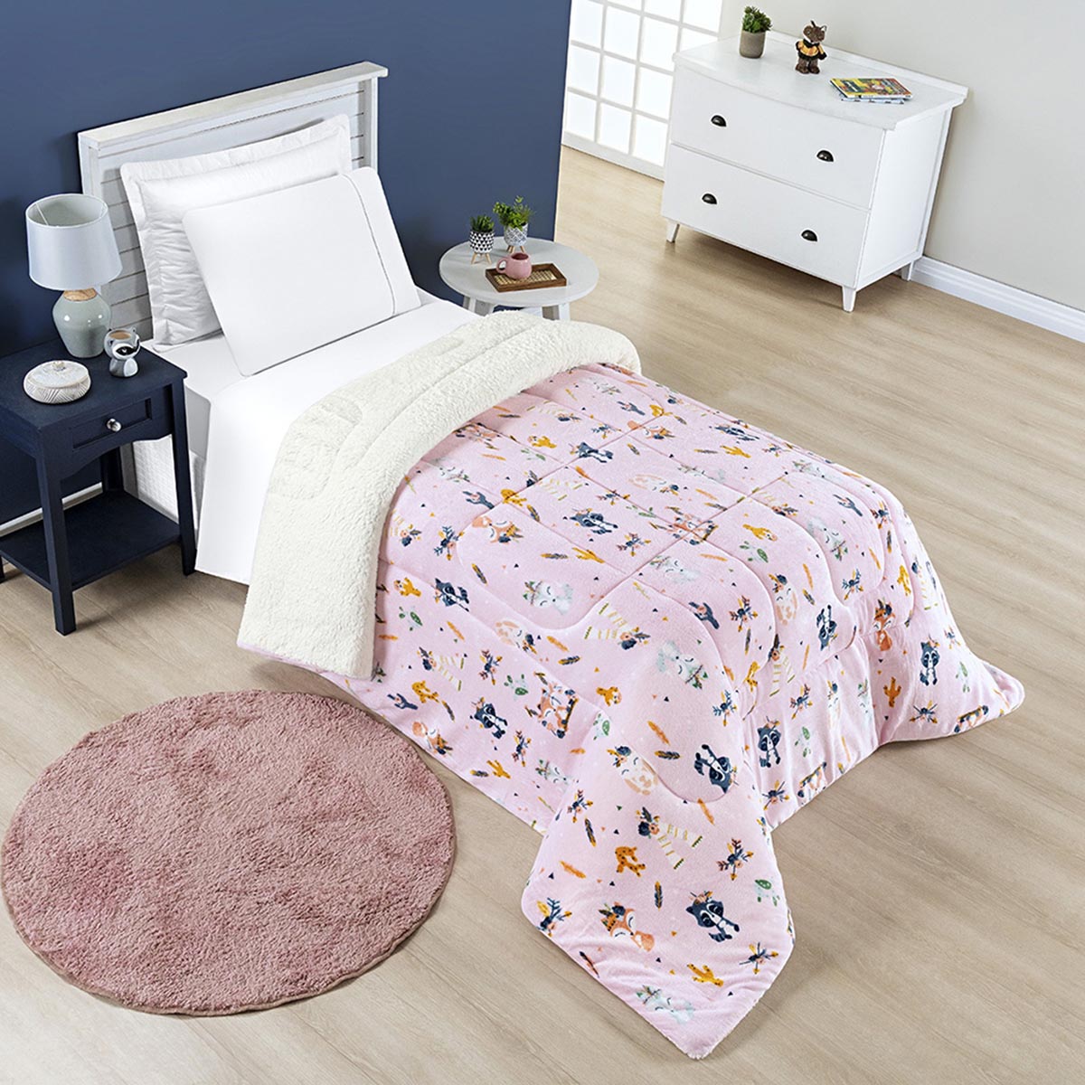 Coberdrom Cobertor Lutti Solteiro Quarto Cama Infantiil Sherpa Manta Toque Lã de Carneiro Foxy Raposinha Rosa