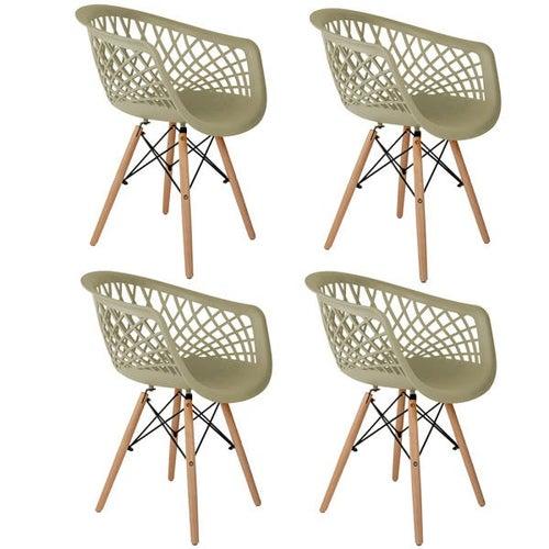 Leve todo o charme dessa cadeira para sua casa! Conheça nossa linha de Cadeira Web e se apaixone por esse modelo que vai mudar o ambiente da sua casa.Nossa Cadeira Web com Base de Madeira Natural DSW foi inspirada por designers da última geração. São Cadeiras com curvas detalhadamente desenvolvidas para o seu conforto. Essa Cadeira é ideal para ambientes como; sala de estar, varandas, sacadas e áreas externas.Com altíssima qualidade, a Cadeira Web tem tramas injetadas por todo o seu encosto confortável e curvilíneo. Com formato ergonômico para melhor adaptação e experiência de nossos consumidores; sua concha é produzida em PP (Polipropileno) garantindo durabilidade e conforto. Os pés são feitos em madeira natural de carvalho, proporcionando a beleza e charme da sua Cadeira, além de uma grade em aço no modelo Eiffel que proporciona segurança e firmeza para sua base. A cadeira ainda conta com sapatas antiderrapantes evitando deslizamentos e acidentes com seu produto, garantindo a confiabilidade da marca Empório Tiffany.Muito mais que um item de decoração, sua Cadeira Web é uma peça funcional, moderna e adequada para os momentos mais agradáveis em família ou entre amigos.Montagem: Sua Cadeira Web com Base de Madeira Natural será enviada desmontada, porém acompanhada de um manual de instruções e kit de montagem, não sendo necessária a contratação de um profissional para montagem.Obs.: Todos os itens enviados devem ser utilizados na montagem, a falta de algum parafuso ou arruela pode causar instabilidade, podendo ocasionar a quebra da concha e a perda da validade da garantia. Orientamos a seguir todos os passos informados no manual de montagem.Limpeza: Sua Cadeira Web pode ser limpa com apenas um pano levemente umedecido com água, seguido de um pano seco. Não utilizar produtos químicos abrasivos ou limpeza a vapor, isso pode danificar seu produto, causando a perda da garantia do fabricante.Medidas do produto: Largura: 57cm x Altura: 78,5cm x Comprimento: 57,5cm.Cor: FendiQuantidade: 4Garantia: 90 dias a partir da emissão da nota fiscal.