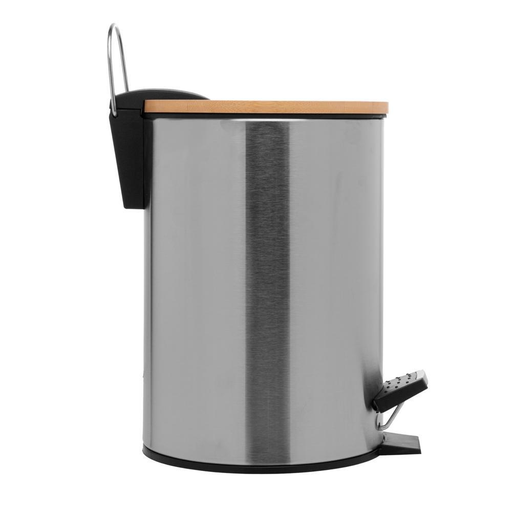 Lixeira Redonda com Tampa em Bambu e Pedal 5L Aço Inox