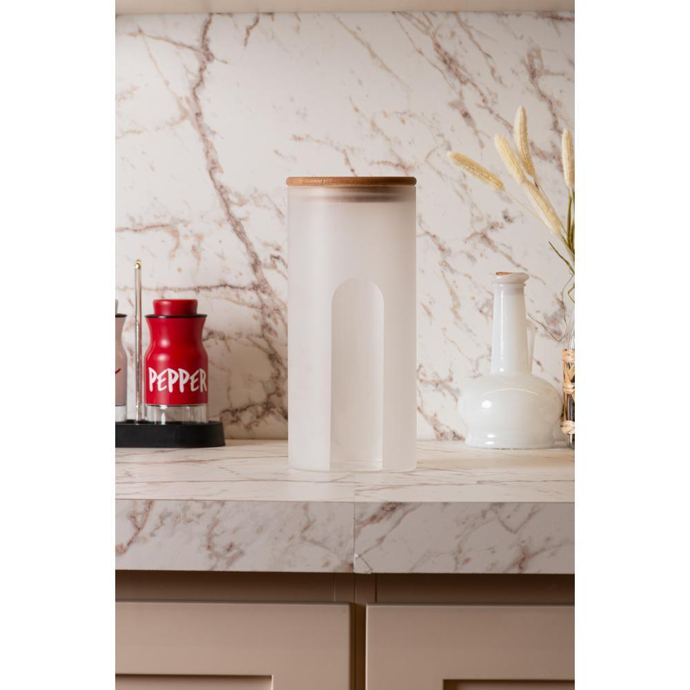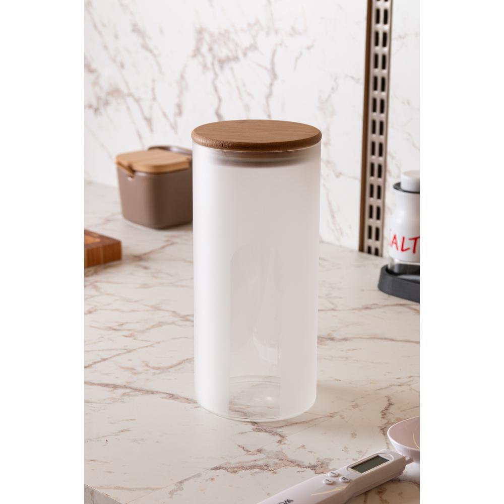 Pote com Tampa de Bambu Frosted 10cm x 10cm x 23cm Vidro