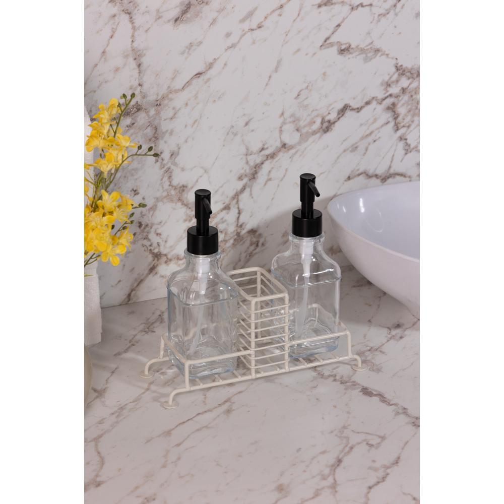 Jogo 2 Porta Sabonete Líquido c/ Suporte Duplo 280ml Preto