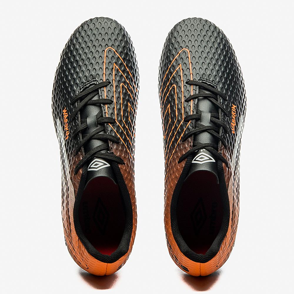 A Chuteira Campo Umbro Warskin é ideal para os jogadores que procuram domínio e controle dentro das quatro linhas. Inovador e funcional, o cabedal traz grafismo em degradê e textura integral que utiliza um novo tipo de cilindro para proporcionar um melhor grip no momento do chute.Cabedal assimétrico construído em material laminado com frequência em rolo aplicada em todo a extensão, que oferece um grip superior quando ocorre o contato com a bola. Possui serigrafia em duas cores com efeito degradê, assinatura Warskin aplicada próximo ao atacador, Diamante Umbro em destaque na lateral e palmilha macia em EVA com tecido de poliéster forrado. O solado de campo FG de 14 travas, com costura de reforço na parte frontal, é composto por PVC.