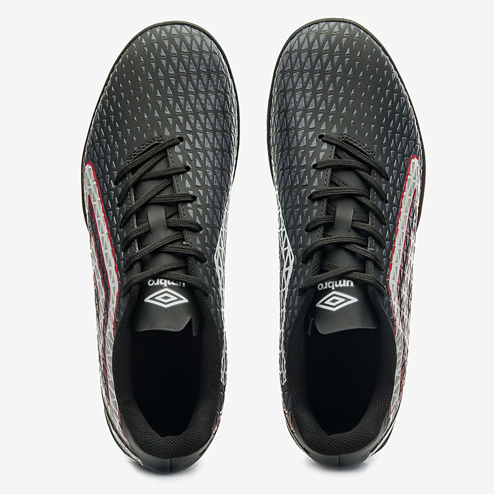 Com um design ousado e irreverente, a Chuteira Society Umbro Mutant exibe arte gráfica personalizada com jogo de cores contrastantes e tom sobre tom. Indicada para jogadores iniciantes, o modelo conta com textura em alto relevo para auxiliar o controle e domínio da bola no gramado sintético.Cabedal assimétrico confeccionado em material laminado com alta frequência e grafismo em serigrafia de 3 cores. Possui forro traseiro em Mesh com acabamento superior luvado, maxi Diamante Umbro Outline na lateral com assinatura do modelo e palmilha interna em EVA conformado para proporcionar um calce macio. O solado Agile de society HG é construído em borracha para maior durabilidade e aderência ao solo.