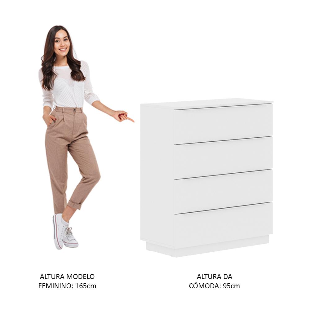 A Cômoda 4 Gavetas da Madesa é um móvel versátil com muita qualidade. Os puxadores são em alumínio, material de alta resistência e durabilidade. As corrediças são metálicas com deslizamento suave. O espaço interno é amplo, pensado para acomodar mais roupas e as gavetas suportam até 5Kg bem distribuídos. Possui acabamento em Pintura Poliéster de alta resistência que garante a beleza do móvel por muito mais tempo. Para garantir a qualidade do produto dentro da embalagem, as peças são acomodadas de forma a evitar o atrito entre elas. Surpreenda-se com um móvel de design, beleza e durabilidade. Medidas da cômoda: 95 cm de altura, 80 cm de largura e 41 cm de profundidade Itens inclusos: - Uma (1) cômoda branca com 4 gavetas. - Ferragens necessárias para a montagem. - Manual de Montagem. Imagem meramente ilustrativa.Código do produto: 3434091 Obs: A Madesa não disponibiliza serviço de montagem.1-O produto é novo ou usado?R.: Todos os produtos da Madesa são novos, enviados da nossa fábrica diretamente para as casas de nossos clientes.2-O produto vem montado? Se não, vocês realizam a montagem?R.: A Madesa não disponibiliza serviço de montagem. Todos os produtos seguem com manual de instalação e as ferragens necessárias. Alguns produtos possuem vídeo explicando o passo a passo da montagem.3-Vocês possuem loja física? Posso retirar meu produto em mãos?R.: Não possuímos loja física, apenas loja virtual. Confira as opções de envio ao colocar o seu CEP.4-Qual é o valor do envio? Posso pagar separadamente?R.: O valor do envio é calculado com base no peso e volume do produto, e no CEP de destino. Você pode calcular o valor e prazo de entrega no simulador.5-A Madesa entrega em todo Brasil? Como é feita a entrega?R.: Sim, entregamos no Brasil inteiro através de transportadoras parceiras.6-O produto acompanha Nota Fiscal?R.: Sim, todos os produtos são entregues com suas respectivas notas fiscais.7-Os produtos possuem garantia?R.: Sim. A Madesa oferece 3 meses de garantia para defeitos de fabricação.A Madesa se dedica à sustentabilidade com várias iniciativas: temos uma usina própria para gerar energia que abastece uma de nossas fábricas. Selecionamos nossos fornecedores, priorizando aqueles que possuem um compromisso com a sustentabilidade e proteção do meio ambiente. Todo o plástico utilizado no setor produtivo é proveniente de reciclagem e as suas sobras são encaminhadas ao fornecedor que os recicla. Também investimos no desenvolvimento contínuo de nossos colaboradores e em ações educacionais que beneficiem a comunidade.
