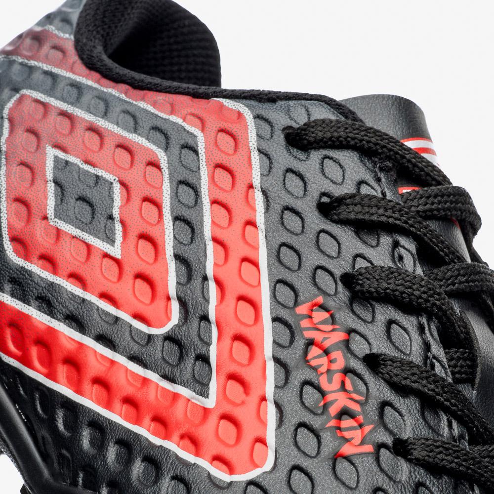 A Chuteira Society Umbro Warskin Jr é ideal para os jogadores mirins que procuram domínio e controle dentro do gramado sintético. Inovador e funcional, o cabedal traz grafismo em degradê e textura integral que utiliza um novo tipo de cilindro para proporcionar um melhor grip no momento do chute. Cabedal assimétrico construído em material laminado com frequência em rolo aplicada em todo a sua extensão, que oferece um grip superior quando ocorre o contato com a bola. Possui serigrafia em duas cores com efeito degradê, assinatura Warskin aplicada próximo ao atacador, Diamante Umbro em destaque na lateral e palmilha macia em EVA com tecido de poliéster forrado. O solado de futebol society HG é composto por PVC.