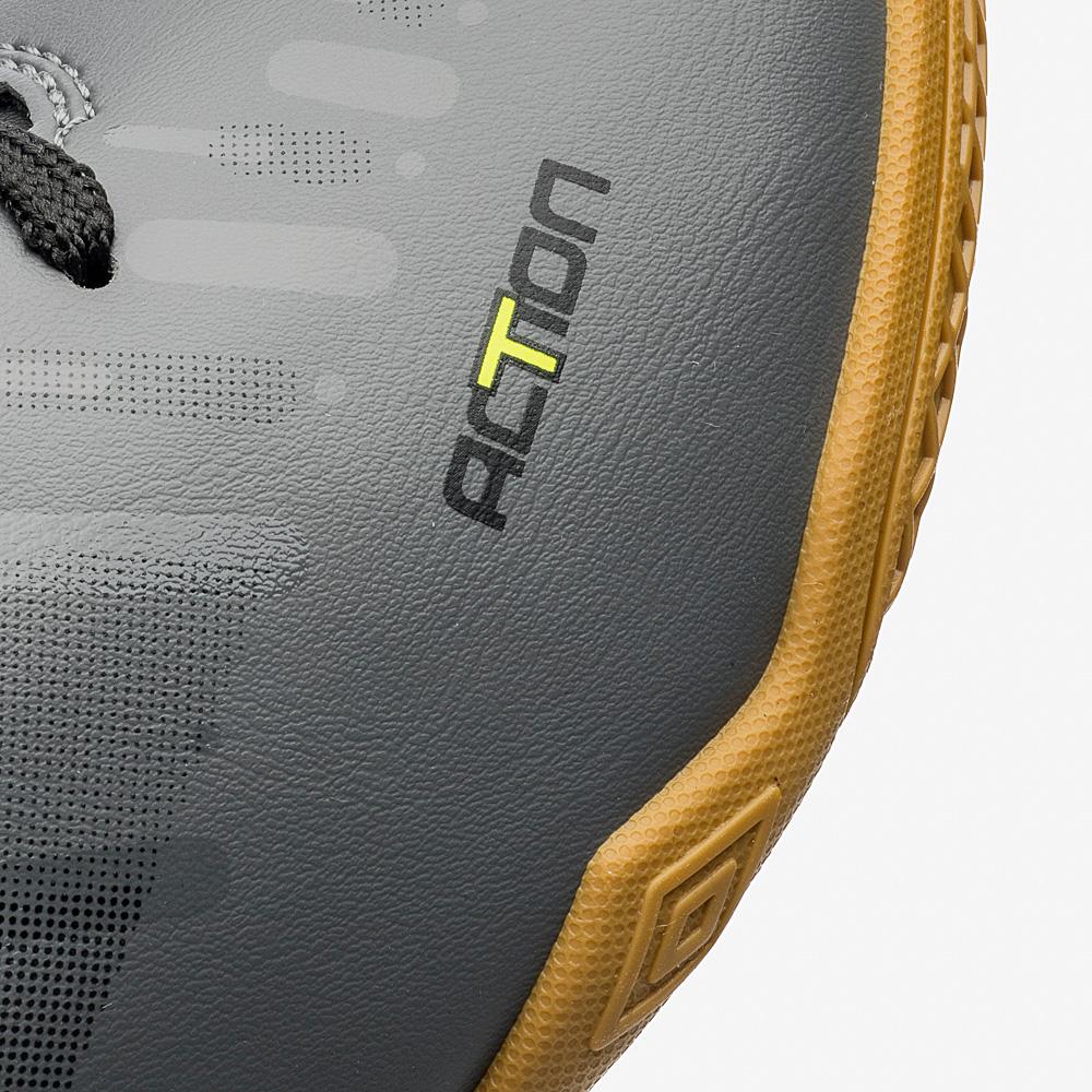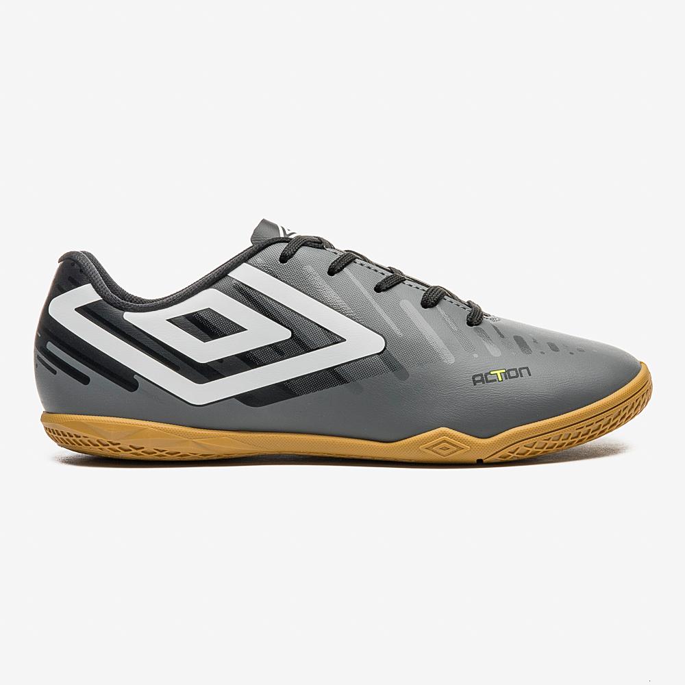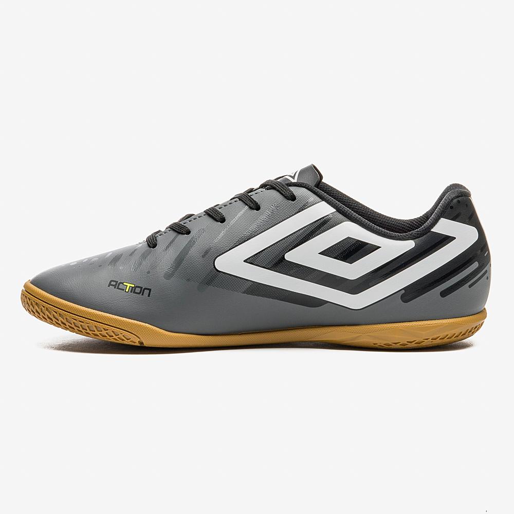 Indicada para jogadores iniciantes que se destacam dentro das quadras de futebol indoor, a Chuteira Futsal Umbro Action exibe artes gráficas personalizadas aplicadas em camadas, com efeito degradê, que oferecem um visual autêntico e moderno no melhor estilo Umbro.Cabedal confeccionado em material laminado. Possui grafismos em “layers” com aplicação de verniz incolor sobre as artes, Diamante Umbro em destaque na lateral, assinatura do modelo na parte frontal e palmilha interna macia em EVA com tecido forrado. O solado de futsal é composto por blenda de PVC e TPU, que oferece aderência ao solo e durabilidade.