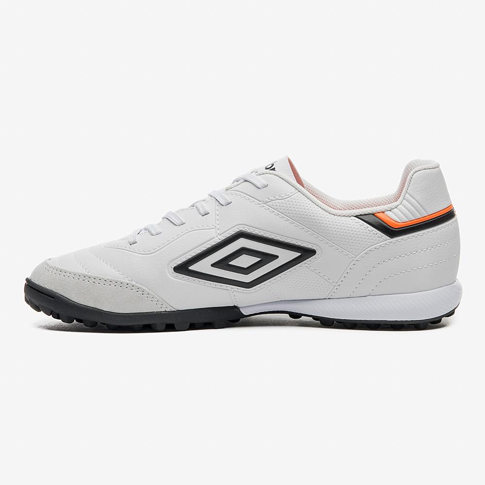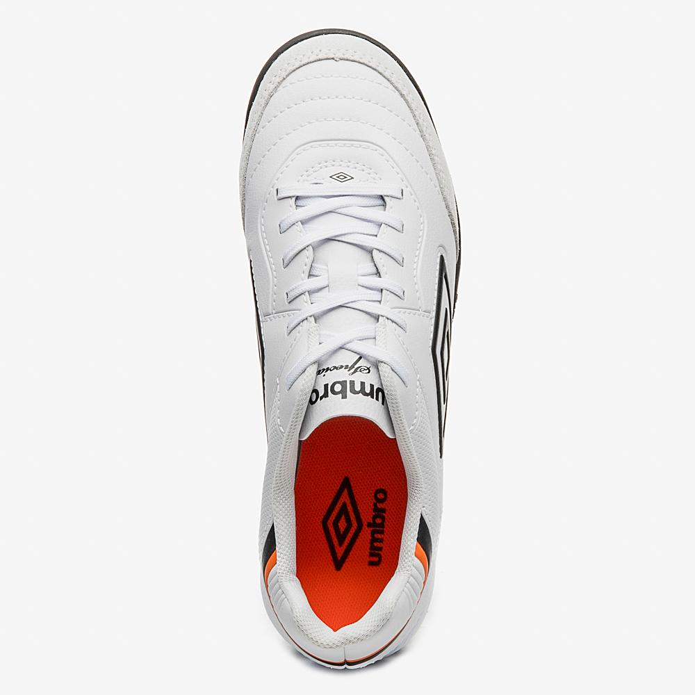 Chuteira Society Umbro Speciali ClassicA Chuteira para Futebol Society Umbro Speciali Classic é a opção ideal para os jogadores que valorizam ícones do gramado sintético. Seu cabedal, construído em material sintético, possui costuras programadas que garantem controle total da bola e biqueira de reforço em camurça natural. O solado de futebol HG bicolor é composto por TPU e EVA para maior aderência ao solo.Atributos do Produto: Marca: Umbro Modelo: U01FB00205 Cor: Branco, Preto, LaranjaDetalhes da Chuteira Society Umbro Speciali ClassicA Chuteira Society Umbro Speciali Classic destaca-se pelos seguintes atributos:Material Sintético de Alta QualidadeO cabedal da chuteira é confeccionado em material sintético de alta qualidade, proporcionando durabilidade e resistência durante as partidas.Costuras Programadas para Controle da BolaAs costuras programadas no cabedal garantem um controle preciso da bola, permitindo passes e chutes mais precisos e eficazes.Biqueira de Reforço em Camurça NaturalA biqueira de reforço em camurça natural oferece proteção extra aos dedos, evitando lesões e proporcionando maior conforto durante o jogo.Solado HG Bicolor para Maior AderênciaO solado de futebol HG bicolor, composto por TPU e EVA, proporciona uma excelente aderência ao solo, garantindo estabilidade e tração em diferentes superfícies.Adquira agora a Chuteira Society Umbro Speciali Classic e eleve o seu desempenho em campo!