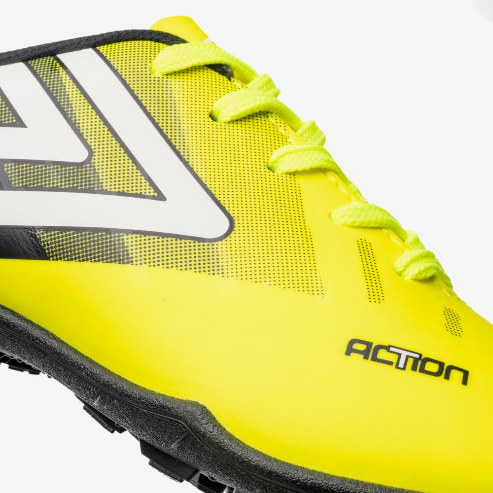 Indicada para jogadores juvenis iniciantes que se destacam nos treinos e partidas, a Chuteira Society Umbro Action Jr exibe artes gráficas personalizadas aplicadas em camadas, com efeito degradê, para um visual autêntico e moderno no melhor estilo Umbro. Cabedal confeccionado em material laminado de fácil limpeza e manutenção. Possui grafismos em “layers” com aplicação de verniz incolor sobre as artes, Diamante Umbro em destaque na lateral, assinatura do modelo na parte frontal e palmilha interna macia em EVA com tecido forrado. O solado de society HG é composto por blenda de PVC e TPU, que oferece aderência ao solo e durabilidade.