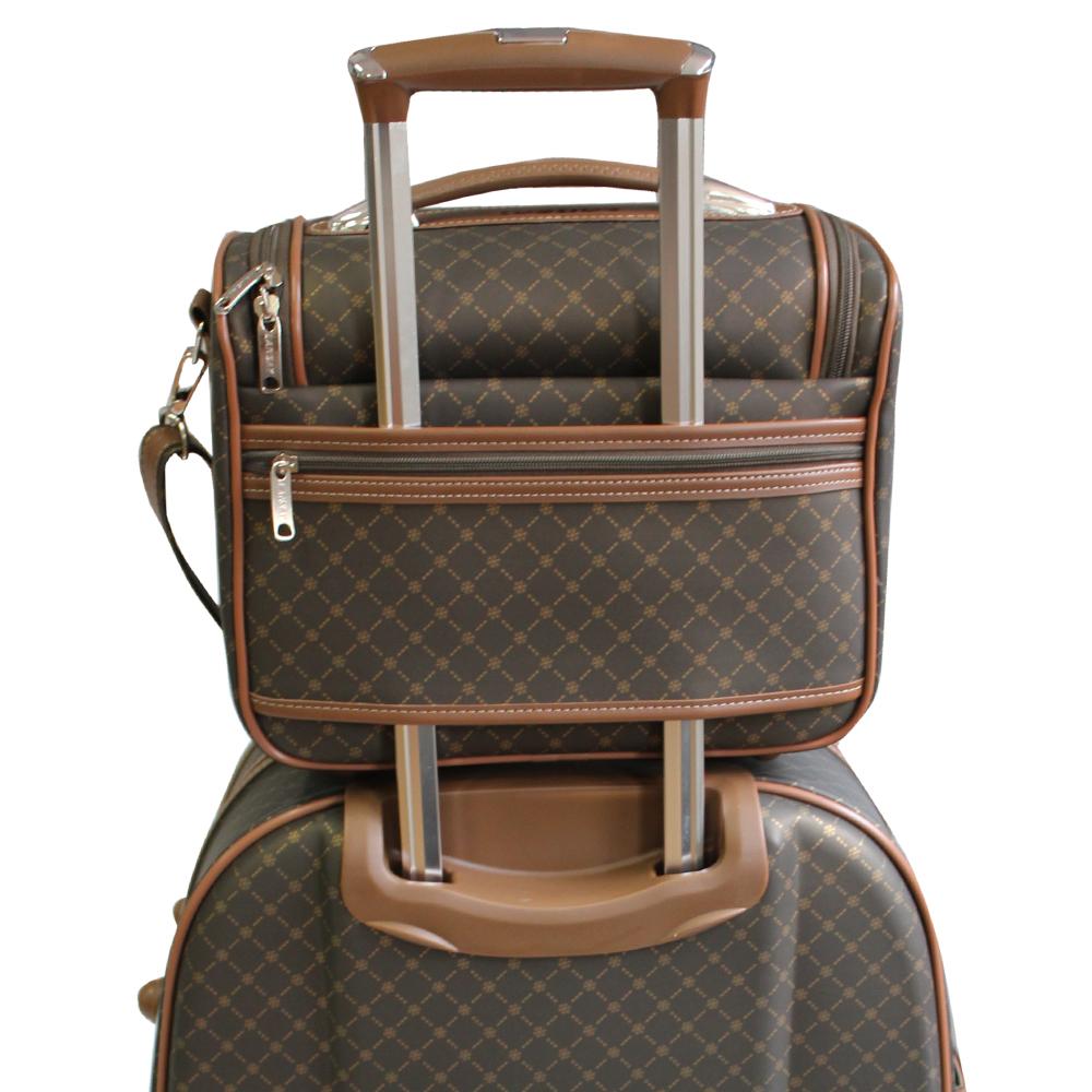 A frasqueira de viagem Topázio é um item ideal para quem busca espaço e praticidade para a organização dos pertences. Maior que um nécessaire, permite levar mais do que os itens de cuidados pessoais. Além de ser utilizada em viagens, também pode ser utilizada no dia a dia. Com amplo espaço interno tem um grande diferencial: sua abertura em zíper vai até o fundo da frasqueira, o que facilita a arrumação e a limpeza. Tem duas opções para carregar: pela alça de mão ou a tiracolo. Para facilitar ainda mais a organização, a frasqueira de viagem possui elásticos reguláveis para prender frascos, um bolso interno e um externo fechados com zíper. Além disso, tem encaixe especial para acoplar nas malas de viagem. A linha de viagem Topázio tem aquele item “a mais” que você precisa para viajar com conforto, estilo e segurança. É composta por sacolas com e sem carrinho, frasqueira e nécessaire, todos confeccionados em vinil com estampa exclusiva, material resistente e fácil de limpar. O forro é 100% poliéster com tratamento de impermeabilização e as ferragens são niqueladas. E mais, todos os itens da Linha Topázio combinam entre si e com as malas das Linhas Saint Tropez e Saint Germain. Monte seu conjunto!INFORMAÇÕES TÉCNICASConfeccionadas em vinil com estampa exclusiva100%forrada em poliéster com tratamento de impermeabilizaçãoFerragens niqueladasAmpla aberturaAmplo espaço internoFechamento com zíperBolso com fechamento em zíper na traseiraBolso interno com fechamento em zíperPorta frascos com regulagem em elásticoAlça de mão com toque emborrachado e presilhas em metalAlça tiracolo destacável com regulagem de altura e ombreiraFundo reforçados com polietilenoPés de apoio no fundoEncaixe para acoplar nos carrinhos das malasGarantia de 2 anos contra defeitos de fabricaçãoAssistência técnica com peças originaisFabricada no BrasilPeso: 1,2 KgTamanho: 29 (A) x 33 (L) x 21 (P) cm