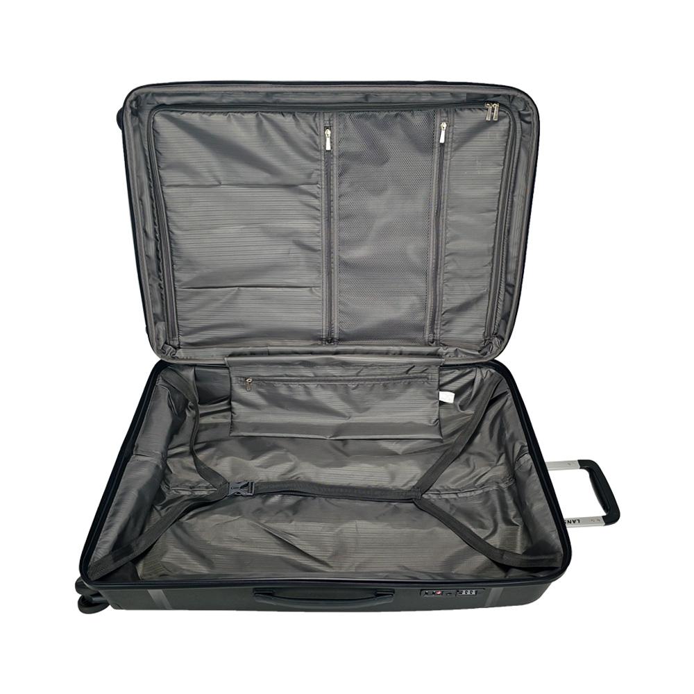 A mala grande da Linha Premium é ideal para quem viaja com bastante bagagem. Feita em PP (polipropileno), é leve, resistente e fácil de limpar. Possui corpo expansível, dois compartimentos independentes e interior 100% forrado em poliéster com três bolsos com zíper. Inclui puxador retrátil com regulagem, rodinhas 360º e cadeado TSA para segurança. Disponível nos tamanhos médio e pequeno, que se encaixam para otimizar o armazenamento. Dimensões da mala grande: altura 77 cm, largura 52 cm, profundidade 30 cm.