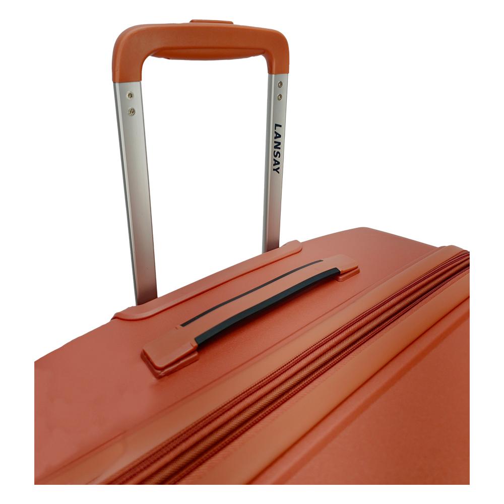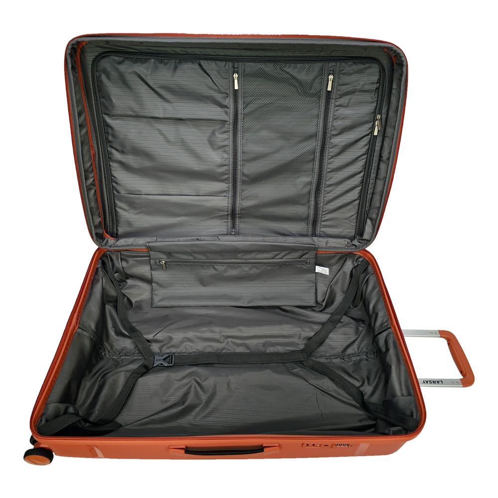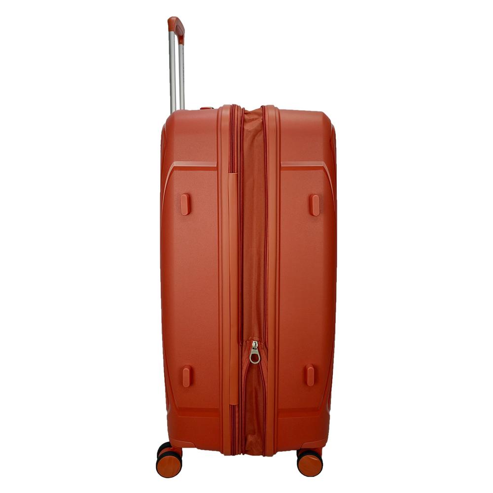 A mala grande da Linha Premium é ideal para quem viaja com bastante bagagem. Feita em PP (polipropileno), é leve, resistente e fácil de limpar. Possui corpo expansível, dois compartimentos independentes e interior 100% forrado em poliéster com três bolsos com zíper. Inclui puxador retrátil com regulagem, rodinhas 360º e cadeado TSA para segurança. Disponível nos tamanhos médio e pequeno, que se encaixam para otimizar o armazenamento. Dimensões da mala grande: altura 77 cm, largura 52 cm, profundidade 30 cm.